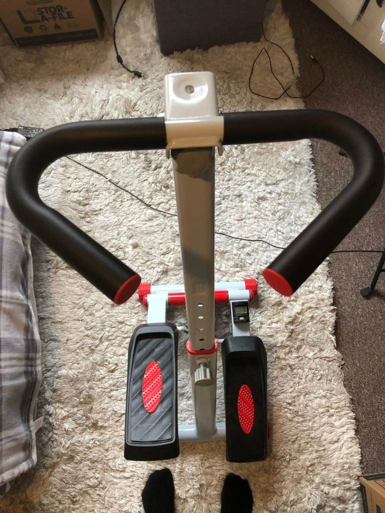 Very good, hardly used, exercise stepper bike for home use. I bought this about 6 months ago but now need to downsize and am looking to sell it. It works perfectly well, no noise or squeaks at all. It's been used about 5 times in total and is easily stored upright or packed away.