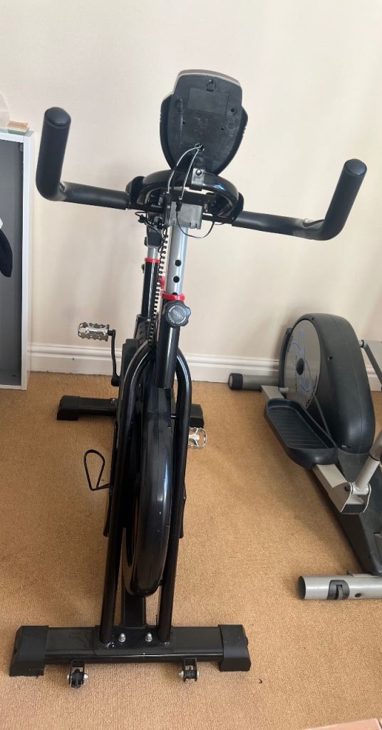 Monitor: Time (mins/secs), Distance (km), Speed (km/h), Calories & Pulse (ppm) - stopped working due to batteries being left in for too long but doesn't affect anything else on the bike which is in very good condition