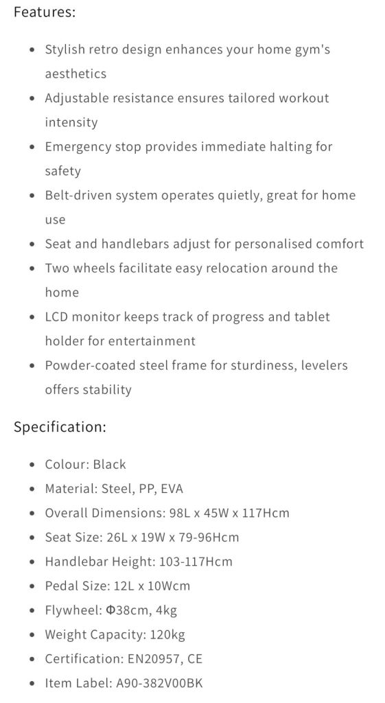 SPORTNOW indoor exercise bike in very good condition and hardly used. Sticker a little warped,See pictures for information, buyer collects.