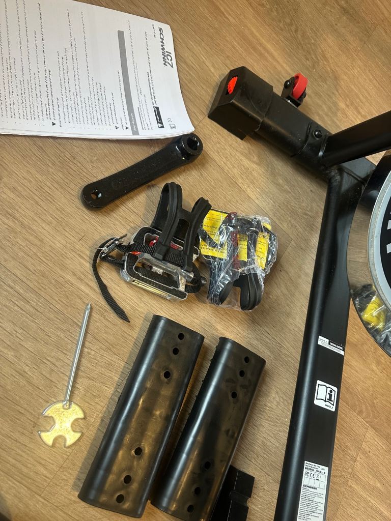 Left pedal needs putting on - put have everything you need as pictured to do so.
