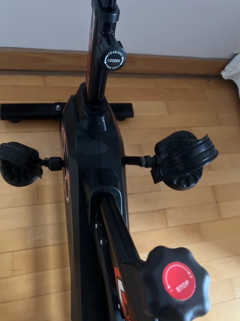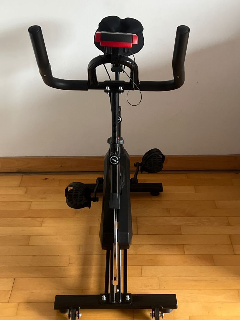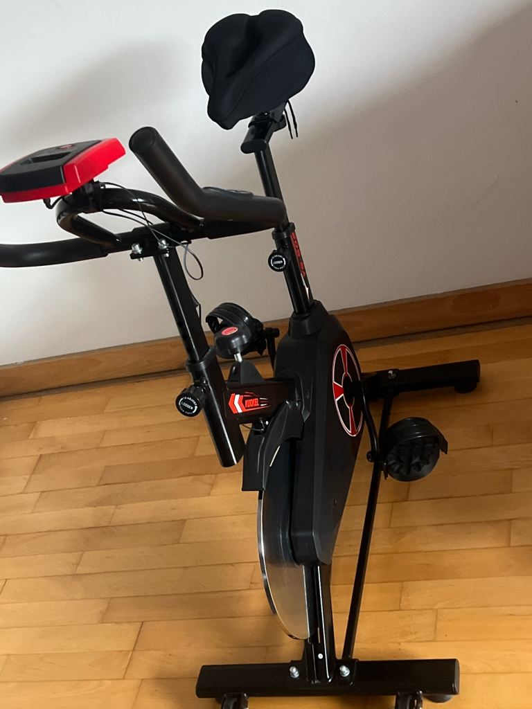 New excellent condition spinning/exercise Indoor cycling bike. Adjustable Seat, handlebar, resistance control, multi-function monitor that supports scanning heart rate, time, speed, distance, calories.