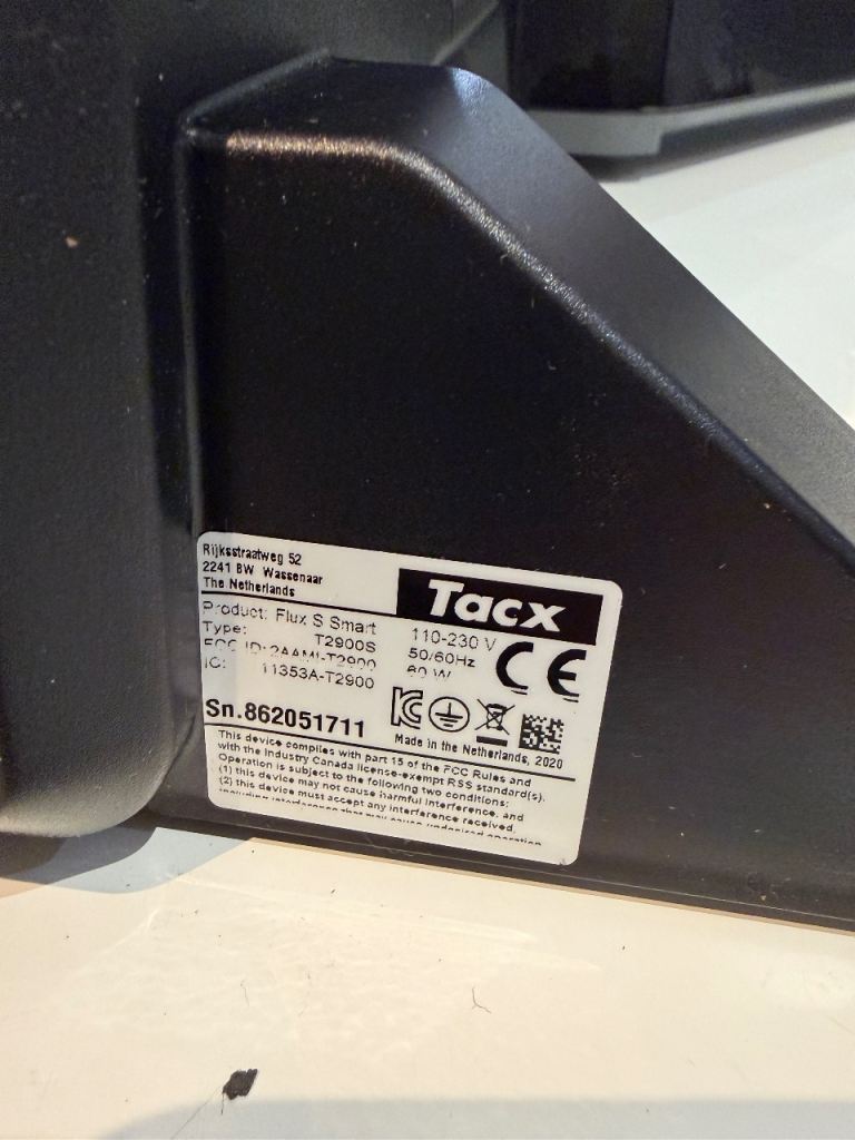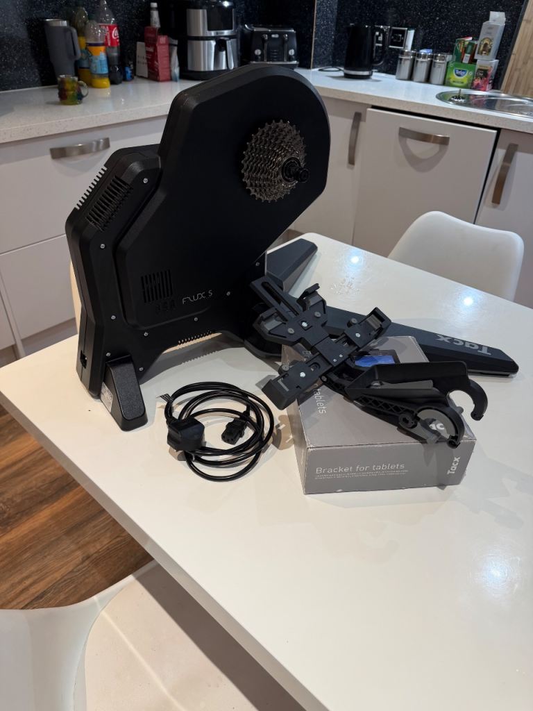 Tacx Flux s turbo trainer in excellent condition . Used this with Rouvy and the incline decline works great . Comes with Tacx bracket for tablet , Shimano 105 11 speed cassette and skewer