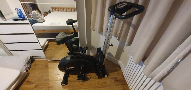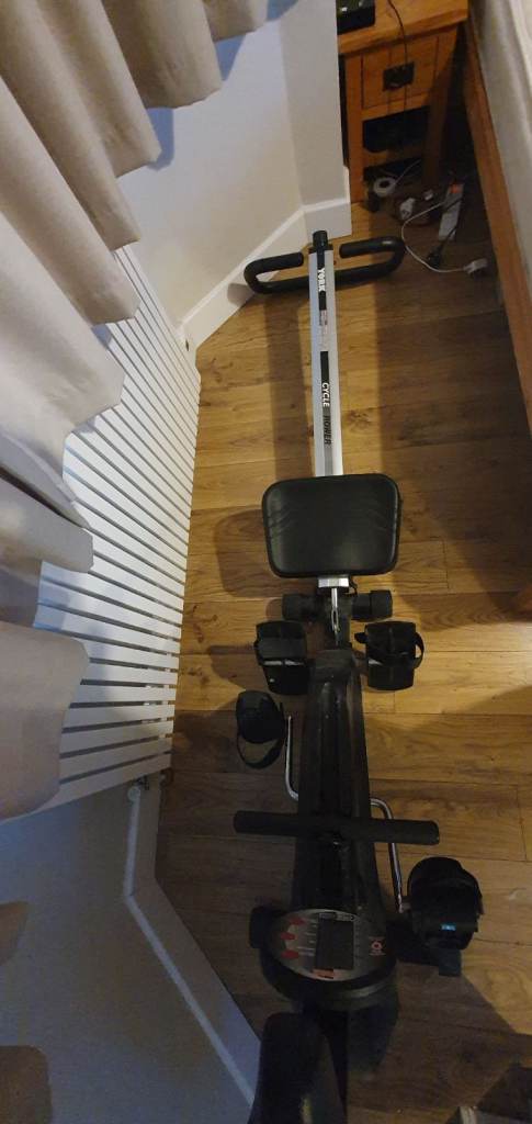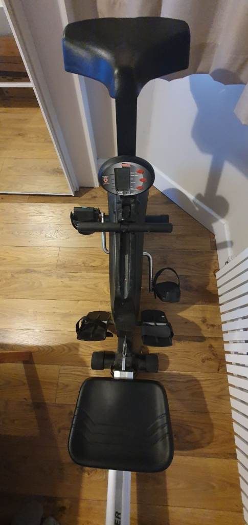 Combined Exercise Bike and Rowing Machine. 10 difficulty settings. Basic workout computer. Time, pulse, etc.
