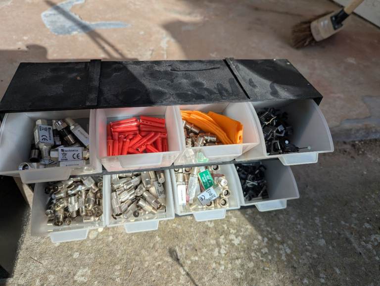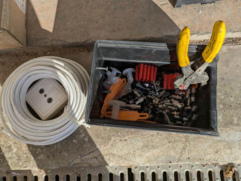 Random assortment of electrical connectors and tools left by previous tenant. Free collection otherwise will bin it