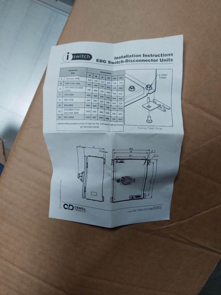 Brand new iSwitch EDG Switch-Disconnector Unit, still in its original packaging.