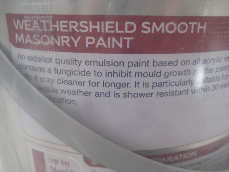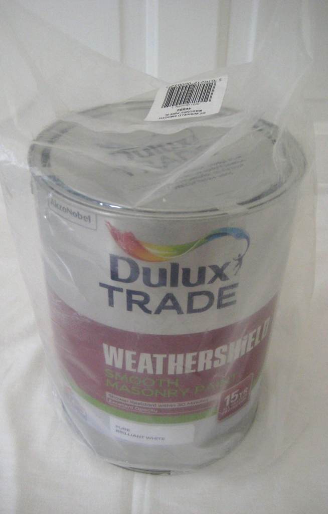 Posting for 10+ monthsDulux Trade Weathershield Smooth Masonry Paint 5 Litres. White. New/unopened.