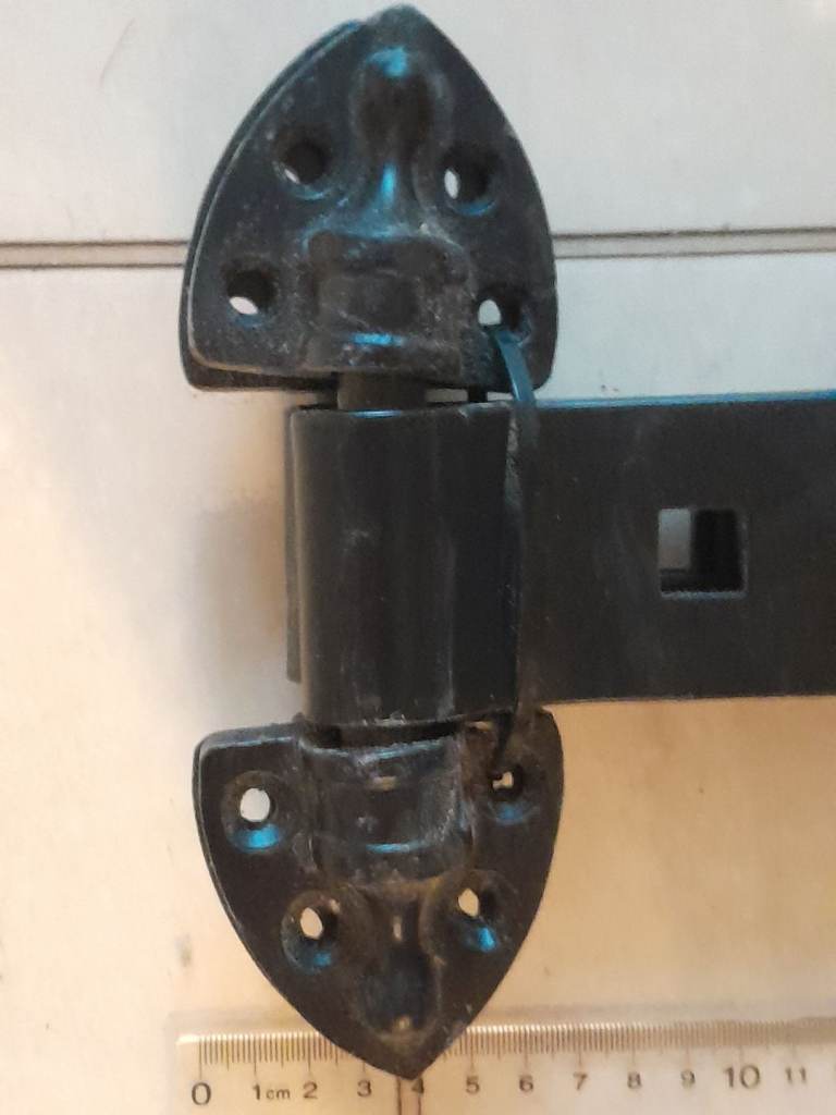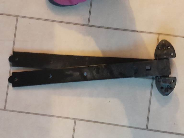 Posting for 1+ years2 large decorative door or gate hinges.