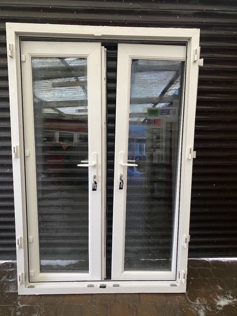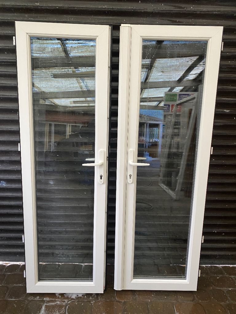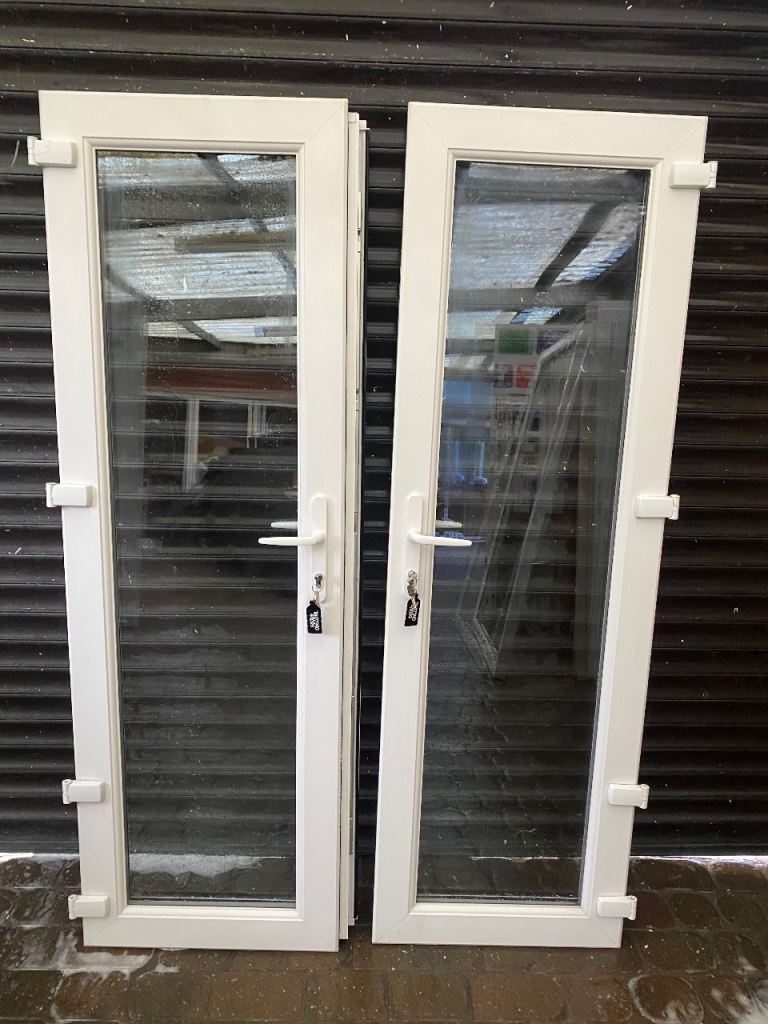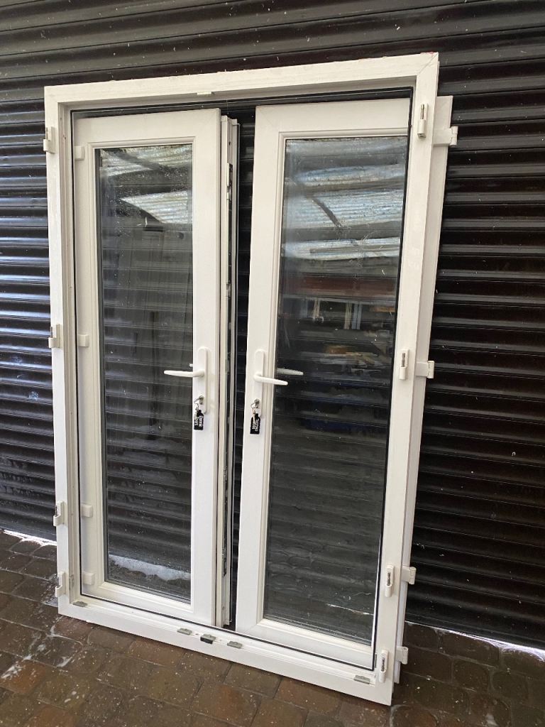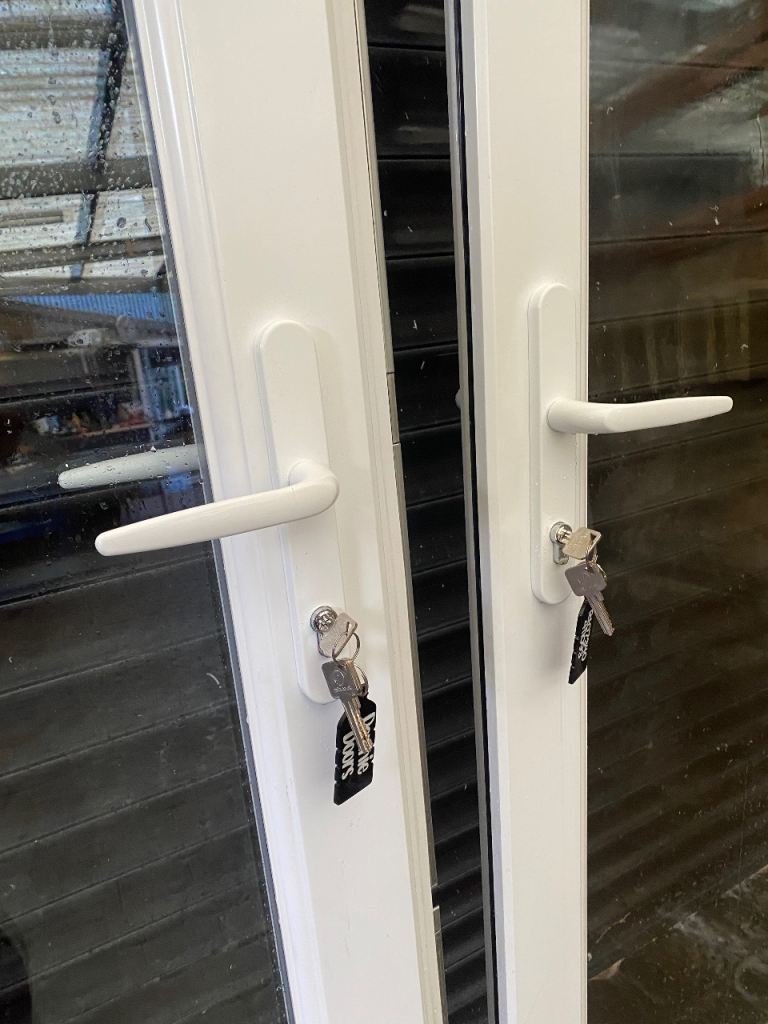 Used upvc white patio doors all in good working condition comes with frame sill glass beads new white handles new lock barrels 6 key’s both doors open outwards it’s white on both sides used but good clean solid doors nice set off patio doors £270