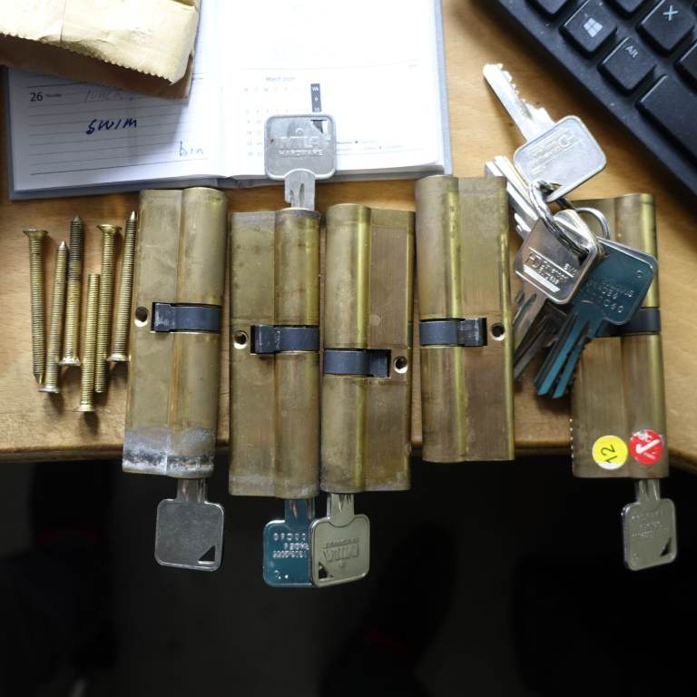 It has three hinges, but no keys for the locks so the mortice and Yale will need replacing, they can be easily unscrewed and removed.