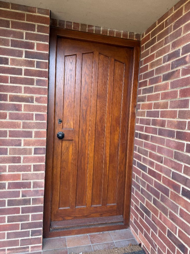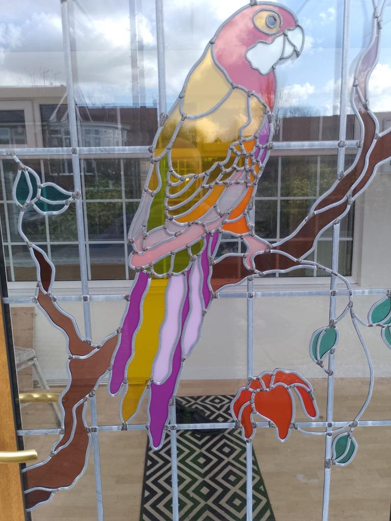 Posting for 2+ monthsWooden affect glass panel parrot front door