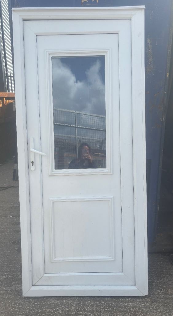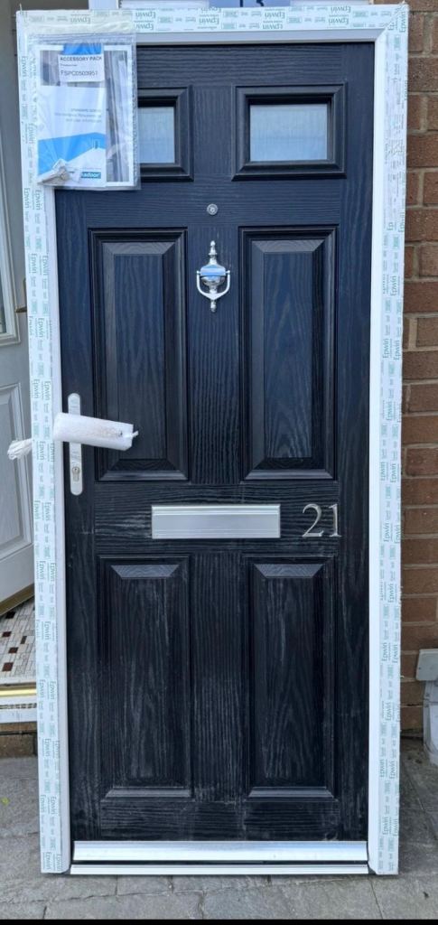 Wooden affect glass panel parrot front door size 925x2080 with frame