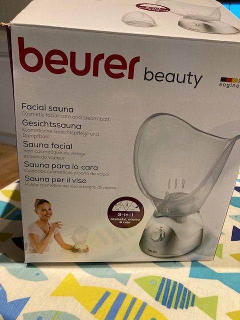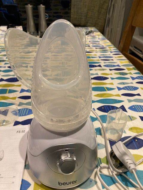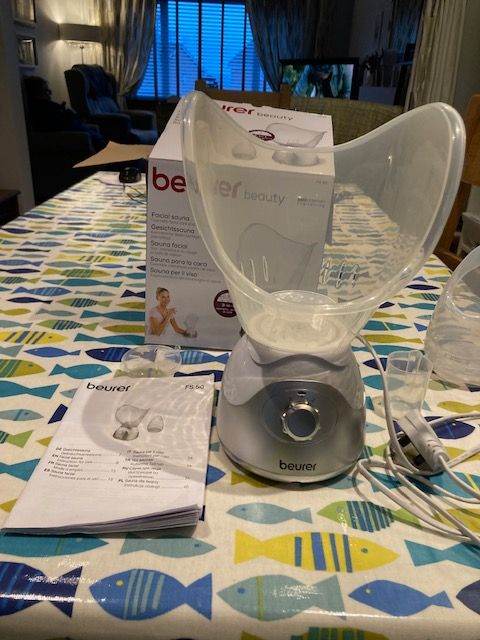Beurer facial sauna model FS50. Designed to promote a healthy glow - ideal both for cosmetic facial care and for inhalation with the appropriate steam attachment (included) for mouth and nose inhalation.