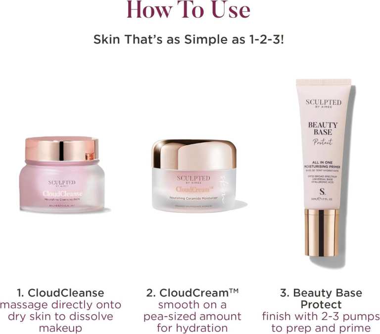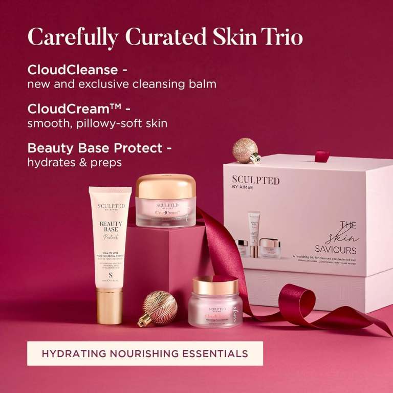 new and sealed in packaging - Skin Saviours Skincare Gift Set from Sculpted by Aimee – Skincare Gift Set for Christmas with Cloud Cleanse Cleanser, Cloud Cream Moisturiser, and Beauty Base Protecting Primer