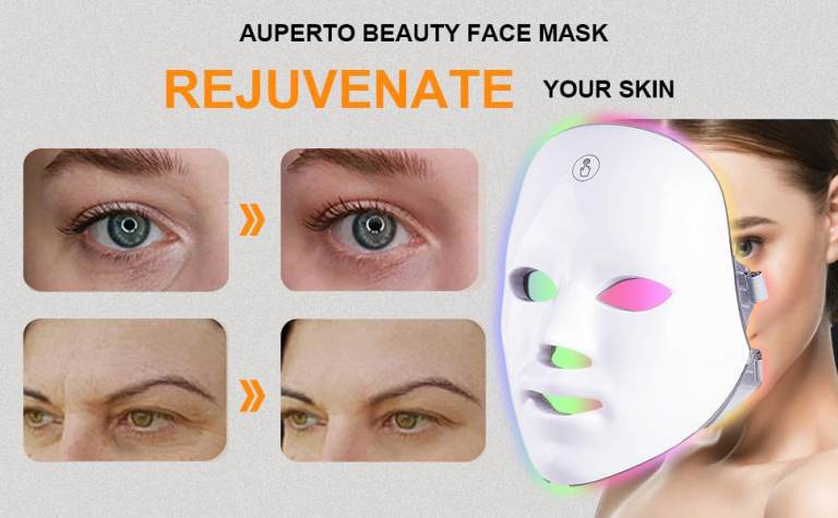 Fully Wearable Anti-Aging LED Device for Wrinkle Reduction, Improves Skin Tone, Texture & Firms the Skin - 7 colour Light Therapy Treatment Device.