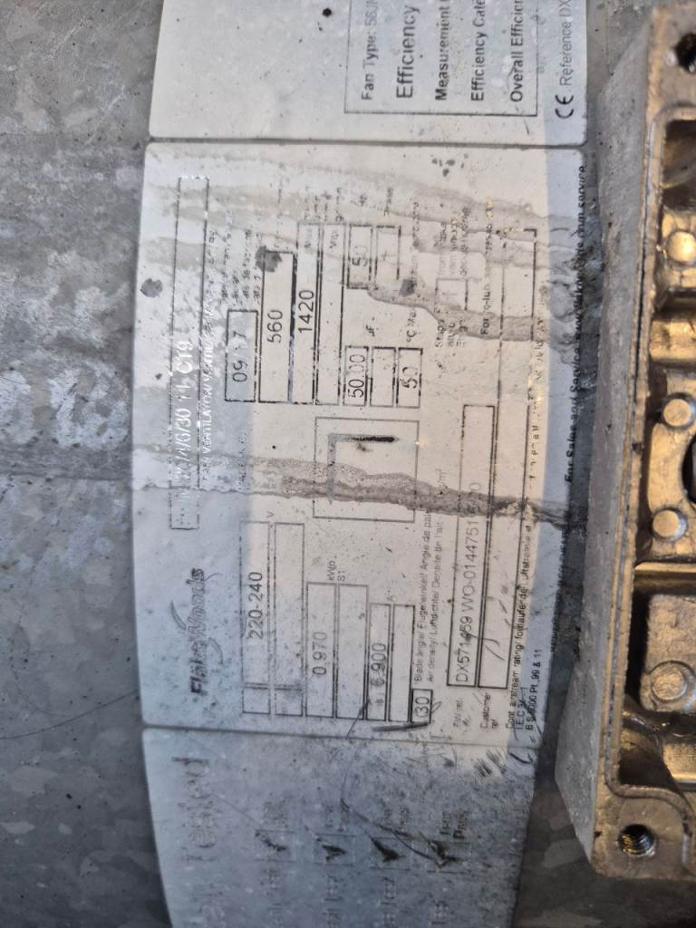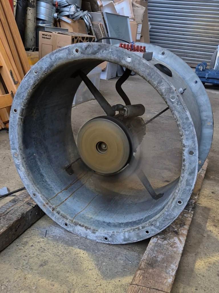 560dia Woods JM fan. Seems to work fine. Can turn it on when buyer arrives to prove this. This is a second hand unit and was taken out of a commercial kitchen upon an upgrade of their system.