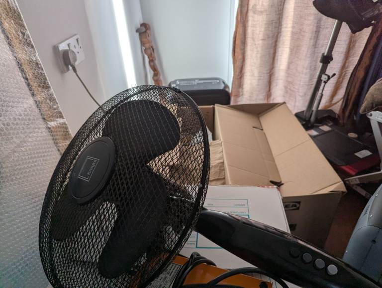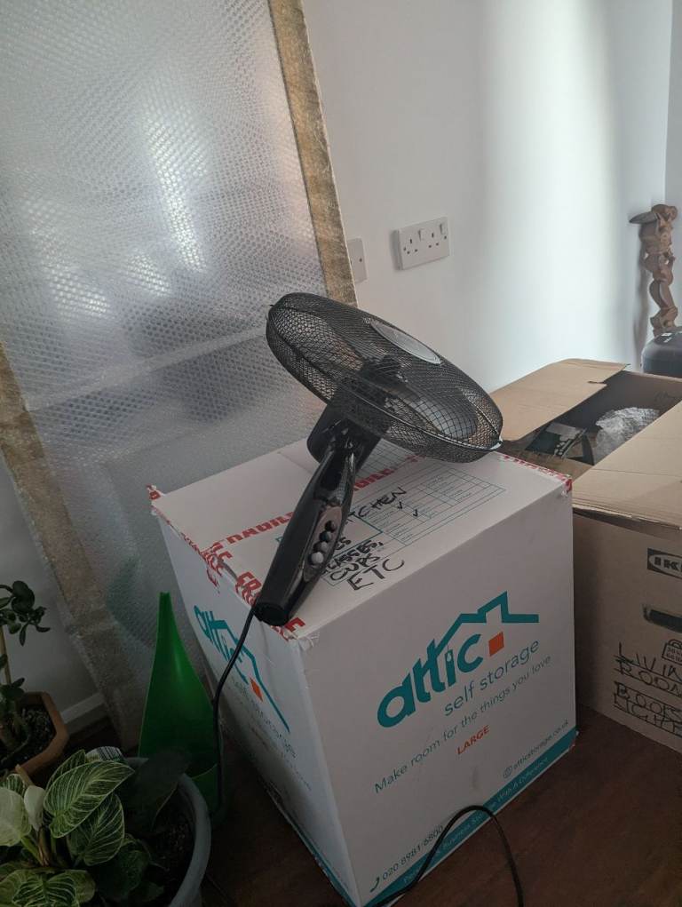 free black oscillating fan in good condition. Is missing the middle extension pole but is working and figured someone can replace it. It also has 2 legs flattened by my scooter but it doesn't affect it standing. Will hold for one week then go to recycling. Must pickup SW18 5TB