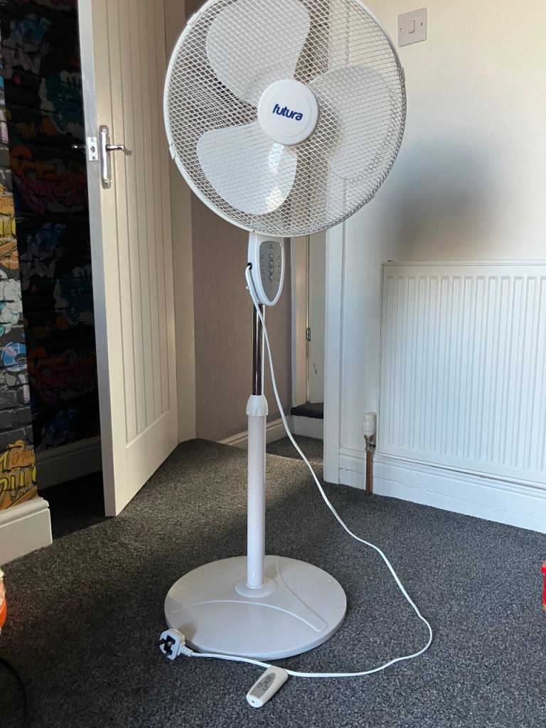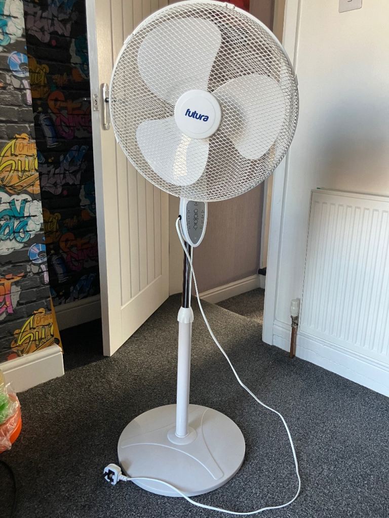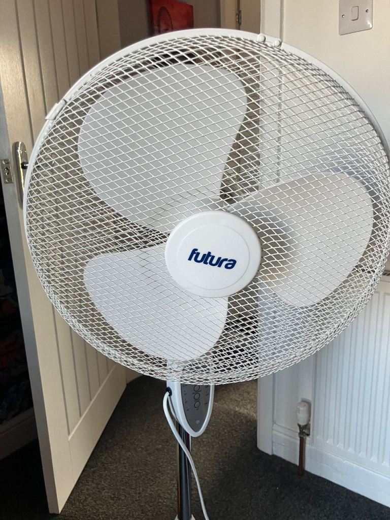 Hello there I am selling futura fan with remote and as a timer on and as spin or no spin very good fan and this is still like new and this is all in excellent condition and in excellent working order and in fully working order so bag a good bargain this year for just £45 bargain and can deliver for a small charge