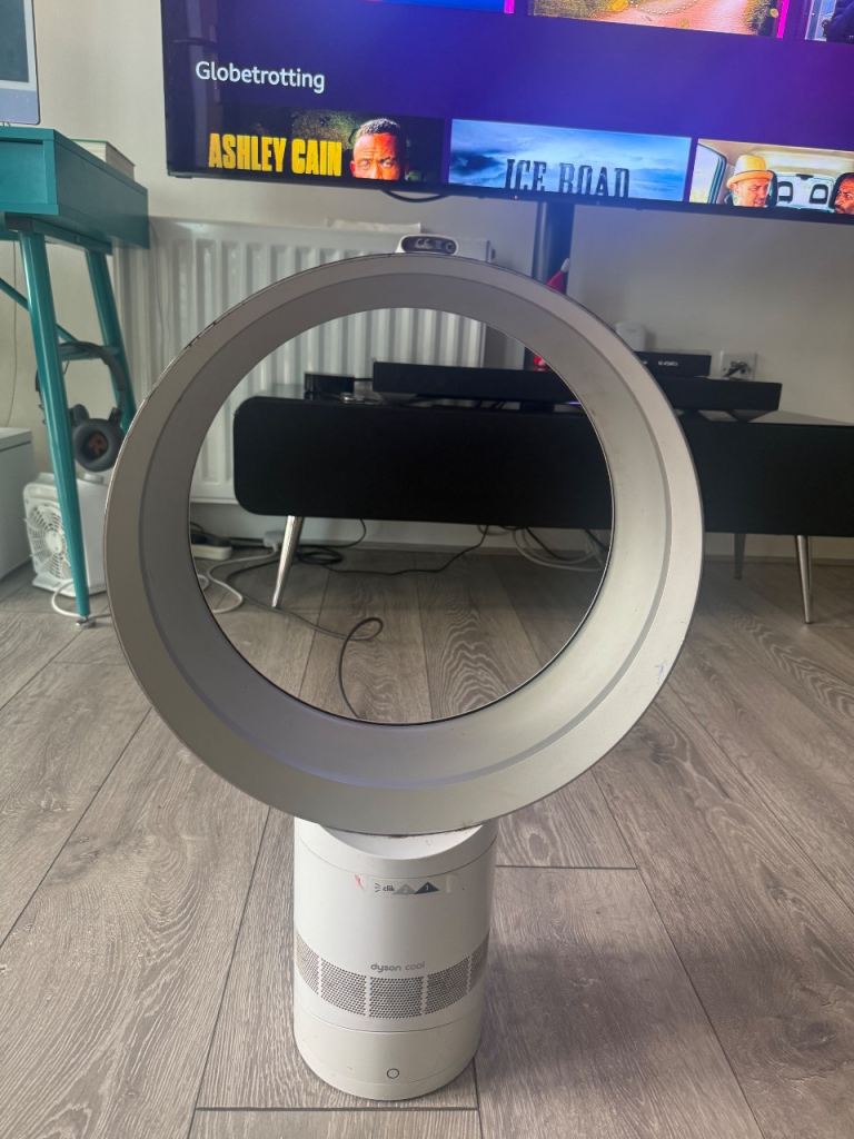 Selling a stylish white Dyson Cool fan in good condition. The fan operates well apart from not rotating, keeping your space cool and comfortable with that signature Dyson design.