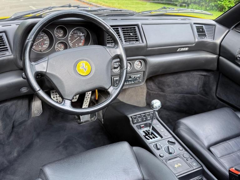 WELCOME TO INDIVIDUAL CARS, WE ARE PROUD TO OFFER THIS ICONIC FERRARI F355 MANUAL SPIDER, PRESENTED IN GIALO FLY YELLOW WITH BLACK LEATHER INTERIOR, LEFT HAND DRIVE, LHD, THIS BEAUTIFUL CAR IS RARE AND A ONE OFF OPPORTUNITY FOR THE NEXT CUSTODIAN, WITH ONLY A GENUINE 19,200 MILES FROM NEW, FULL FERRARI DEALER AND SPECIALIST SERVICE HISTORY (SERVICE AND MAINTAINED EVERY, MAJOR OVERALL SERVICE CARRIED OUT INCLUDING CAM-BELT SERVICE AT A COST OF £19,000 WORK CARRIED OUT BY RARBLEY MOTORS LTD INDEPENDENT FERRARI SPECIALIST, ORIGINAL BILL OF SALE, ALL OLD V5 LOG BOOKS, PRIVATE REGISTRATION NOT INCLUDED IN SALE) 2 ORIGINAL FACTORY KEYS, ONLY 1 PREVIOUS OWNER FROM NEW, CURRENT OWNER SINCE 1999, ORIGINAL SERVICE BOOK AND OWNERS MANUAL, ORIGINAL FERRARI TOOL KIT INTACT IN ITS LEATHER WALLET, This particular FERRARI F355 SPIDER represents the best of the best – a unique opportunity to own a car that’s been cherished for over two decades. Completely Original – no modifications, no aftermarket parts, Well-Documented – with a full history that proves its exceptional care, a sought-after collector’s cars, with values only continuing to rise.