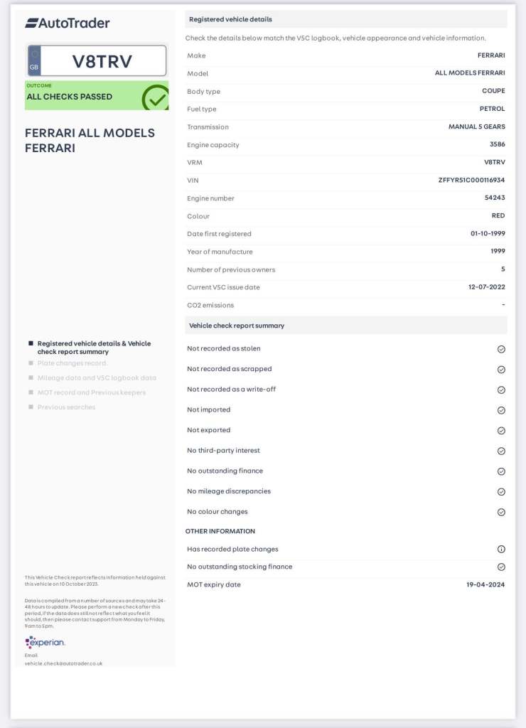 Buy the full report for guaranteed data accuracy, outstanding finance, valuation, milage check & VIN match for £9.99 (normally £19.99)