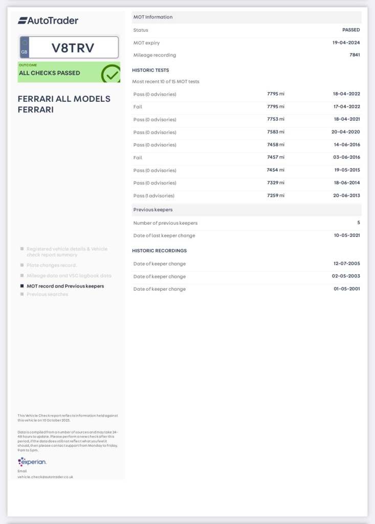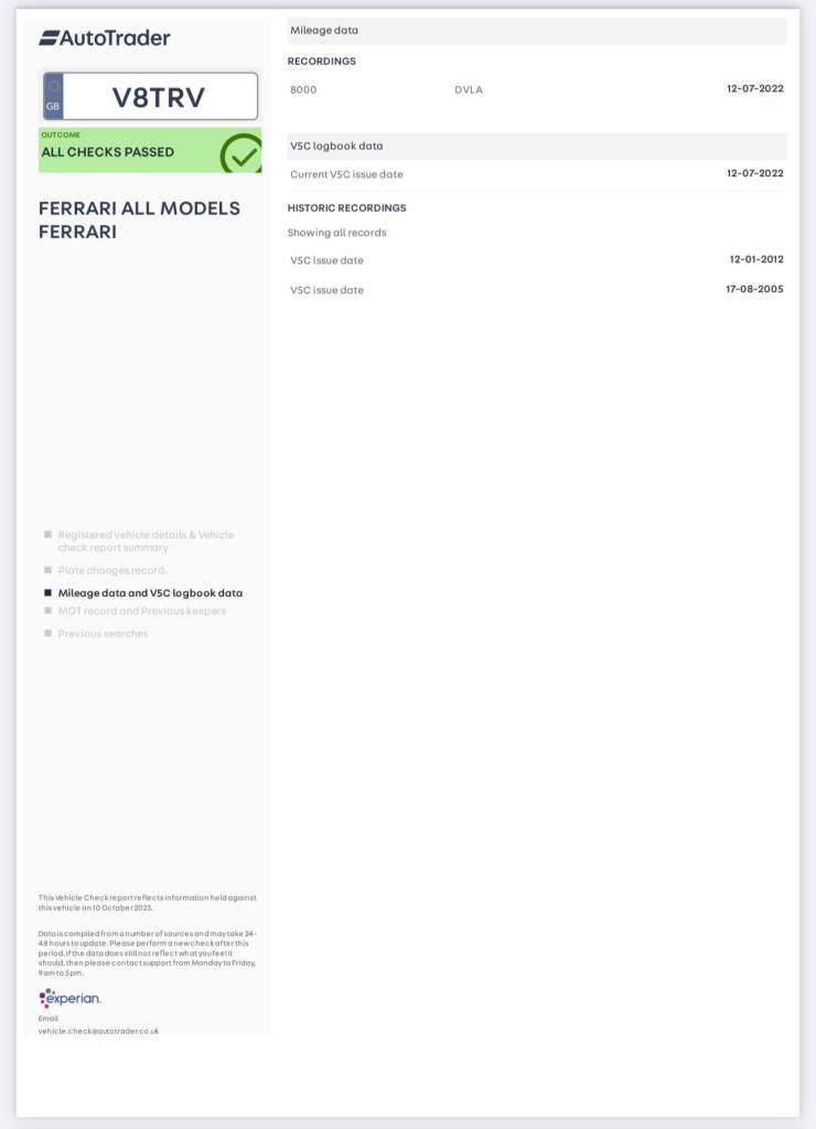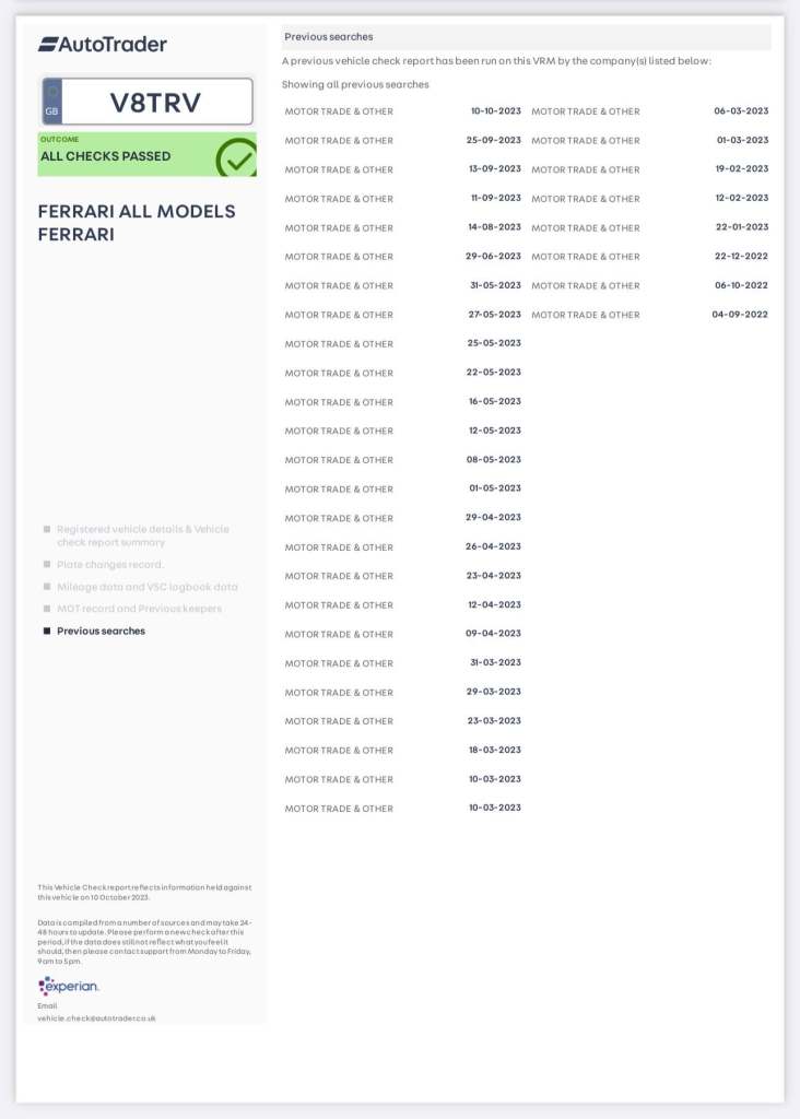 Our vehicle history check is provided for guidance only. Please check all the details with the seller before purchasing