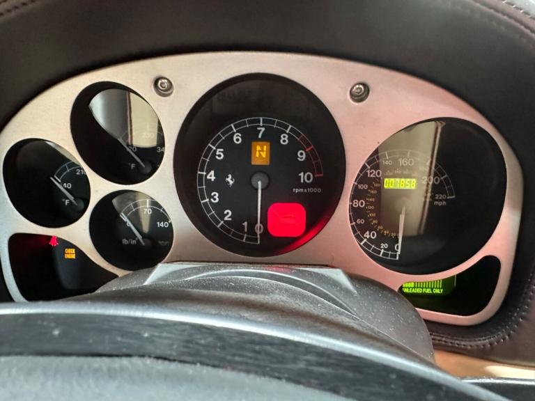 1999 with Full Ferrari Service History, PPF fitted on the front panels. Serviced in April 2020 at Ferrari Major Service with Timing Belts and all the Stamps in the book, Matching Leather Suitcases, Ferrari Trickle charger, Tool kit, Tyre pump, Ferrari Tyre Repair canister + Ferrari Service seat covers and an indoor Ferrari car cover, original Key with a spare key also the Red key, Challenge Stradale engine grille is as ordered from new. Sports F1 Gearbox with an excellent service history very well maintained. The registration plate on the car doesn’t come with the vehicle, but is available. Vehicle is kept off site in a climate controlled environment, please call for an appointment.