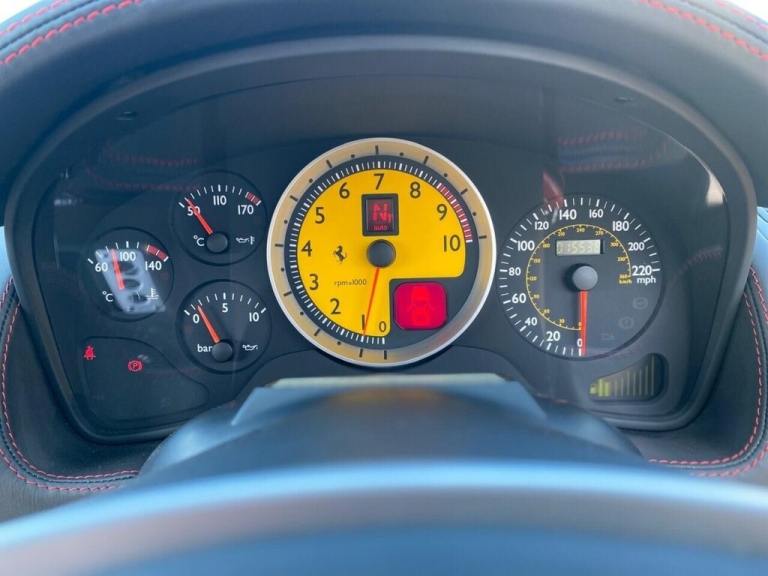 A TRULY OUTSTANDING SUPERCAR FINISHED IN NERO DS BLACK PAINT, JUST ARRIVED ON SITE+FABULOUS LOW MILEAGE EXAMPLE+FULL FERRARI SERVICE HISTORY+NERO RACING SEATS WITH RED STITCHING AND CARBON FIBRE FINISH+SCUDERIA FERRARI SHIELDS ON FENDERS+GIALLO MODENA BRAKE CALIPERS+TAIL PIPE TIPS WITH CHROME FINISH+FERARRI CHALLENGE STYLE, REAR SEGMENT IN CARBON FIBRE+PARK ASSIST+CLIMATE CONTROL+19 INCH ORIGINAL ALLOY WHEELS+CARPETS IN NERO+YELLOW REV DIAL+NERO LEATHER HEADLINER+6 CD CHANGER!!!!!!!!!!!!!!!!!!! A TRUELY OUTSTANDING SUPERCAR FINISHED IN NERO DS BLACK PAINT, JUST ARRIVED ON SITE+FABULOUS LOW MILEAGE EXAMPLE+FULL FERRARI SERVICE HISTORY+NERO RACING SEATS WITH RED STITCHING AND CARBON FIBRE FINISH+SCUDERIA FERRARI SHIELDS ON FENDERS+GIALLO MODENA BRAKE CALIPERS+TAIL PIPE TIPS WITH CHROME FINISH+FERARRI CHALLENGE STYLE, REAR SEGMENT IN CARBON FIBRE+PARK ASSIST+CLIMATE CONTROL+19 INCH ORIGINAL ALLOY WHEELS+CARPETS IN NERO+YELLOW REV DIAL+NERO LEATHER HEADLINER+6 CD CHANGER!!!!!!!!!!!!!!!!!!!.Pre-Wiring and Kit for Battery Charger, Carbo-Ceramic Brake System, Brake Calipers in Yellow, Special Stitching Colour upon Request, Leather Upholstery for Headliner, Colour upon Request for Upper Dashboard, Colour upon Request for Standard Stitching, Scuderia Ferrari Shields on Front Wing, Two Racing Seats in Leather, 6 CD Autochanger, Air Bag Driver, Air Bag Passenger, Alloy Wheels, Anti-Lock Brakes, Body Coloured Bumpers, Central Door Locking, Climate Control, Computer (Driver Information System), Deadlocks, Electric Windows (Front), Electronic Stability Programme, Head Restraints, Immobiliser, Power-Assisted Steering, Seats Electric (Driver/Passenger), Traction Control System, Upholstery Leather