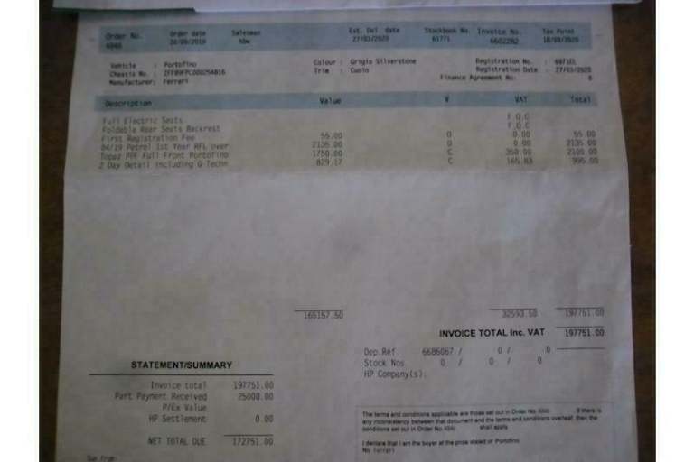 Call leo [Phone number removed].. 1 Owner as new . Cherished reg not on car but available to buy 456 HWJ .Ferrari Portofino in grigio silverstone with tan leather and black carpets,sport exhaust ,scud shields .mag ride .20" forged alloys. Carbon zone pack, balance of 4 year warranty from May 2020. 7 year service pack. apple car play.surround cameras.fully electric seats,foldable rear seats. car cover charger and wind deflector. PPF protection
