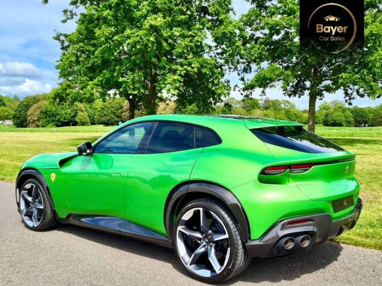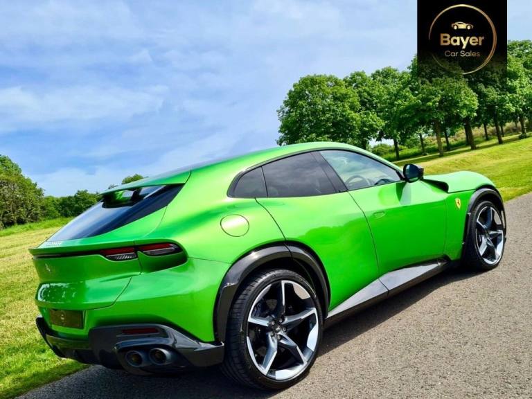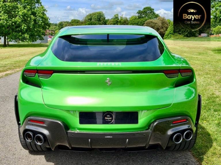We are delighted to offer this very rare, Delivery Mileage Ferrari Purosangue with the most exquisite specification a true one off. It also has the benefit of being VAT Qualifying. Over £126,000 of options including every carbon option! It also has the benefit of Topaz Paint Protection Film. Physical Car - beat the exceptionally long wait. A little bit about us and how we work. We are a family business who have been supplying main dealerships for over 20 years. We have a very good supply of used cars that are in the main purchased directly from large PLC companies or main dealerships. We operate on a high turnover and small margin making our vehicles the best priced in the current market. With this in mind we don?t discount as we simply don?t have big margins to do so but more the fact we prefer to be completely transparent and believe everyone deserves to be offered the same great prices. We operate on an appointment basis so we can ensure the vehicle is ready. Please give us a call and pop in for a coffee..10.2in Passenger Display, 16in Full Digital Display Instrument Cluster, 22-23in Alloy Wheels - Chrome Painted, 22-23in Alloy Wheels - Forged - Orbit Grey, ABS EVO - Anti-Lock Braking System, Adaptive Cruise Control - Automatic Emergency Brake - Lane Departure Warning - Lane Keep Assist with Blind Spot Detection, Adaptive Front Headlights, Air Quality Sensors, Airbag - Side, Automatic Rear Doors, Battery Maintainer, Black Ceramic Exhaust Pipes, Blue Brake Callipers, Car Protection Cover, Carbon Fibre Outer Mirrors, Carbon Fibre Roof, Carbon Fibre Wheel Cups, CCM4 - Carbon Ceramic Brake System, Colour Upon Request for Leather Upper Area, Colour Upon Request for Special Stitching, E-Diff 3 with SSC Integration, Electric Windows - Front, Electrochromic Heated Side Mirrors with Automatic Closure, Embroidered Prancing Horse on Headrests, EPS - Dynamic Electronic Power Steering, Ferrari Active Suspension System, Floor Mats with Embroidered Logo, Four Soft Close Doors, Four Zone Air Conditioning System, Front and Rear Parking Sensors, Front Massage and Ventilated Seats, Full Electric Seats, Full Matrix-LED Headlights, Glossy Carbon Fibre Door Panels, Glossy Carbon Fibre Front Spoiler, Glossy Carbon Fibre Rear Diffuser, Glossy Carbon Fibre Sill Kick, Glossy Carbon Fibre Steering Wheel with LEDs, Glossy Carbon Fibre Underdoor Cover, Glossy Carbon Fibre Upper Tunnel Trim, Heated Steering Wheel, High-End Audio System, Iconic Special Colours, Infotelematic System with new HMI with USB Port on Central Tunnel - Bluetooth Audio Streaming, ISOFIX for Rear Seats, Key with Transponder - Integrated Anti-Theft Alarm and Remote Control for Opening Doors and Tailgate, Keyless Engine Start System, Leather - Nero, New Style Seats, Panoramic Roof, PCV 3.0 with Independent Rear Wheels Steering System, Personalisation Pack, Rain and Light Sensors, Rear Parking Camera, Scuderia Ferrari Shields on Fenders, Smartphone Interface, SSC - Side Slip Control 8.0, Stolen Vehicle Recovery System, Surround View, Titanium Wheel Bolts, Topaz PPF - Paintwork Protection, TPTMS - Tyre Pressure and Temperature Monitoring System, Traction Control F1 with SSC Integration, Trunk Kit, Two Dual-Stage Front Airbags, Tyre Repair Kit, Vehicle Dynamics Control - Manettino with 5 Settings - Wet - Comfort - Sport - Race - ESC OFF, Ventilated and Heated Rear Seats, Wheel Arches in Glossy Carbon, Wireless Smartphone Charger