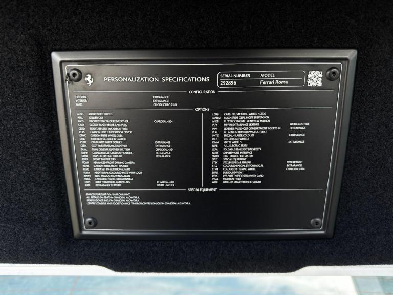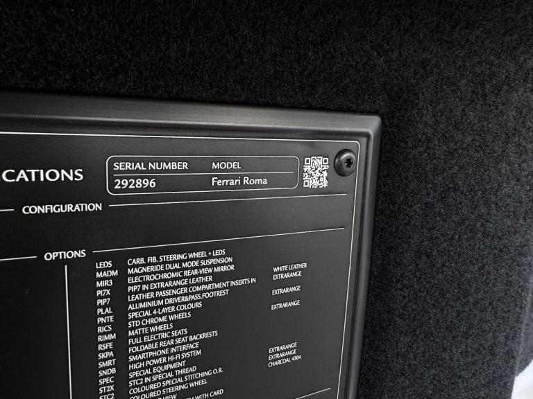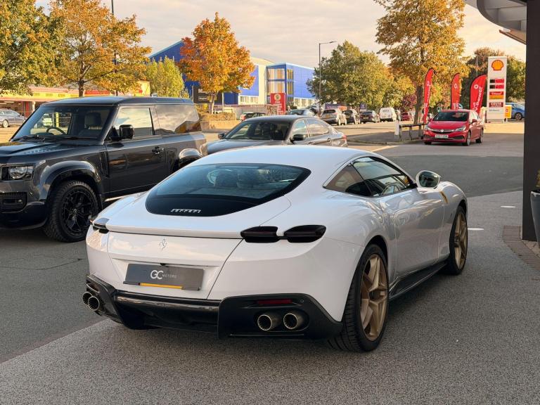 V A T Qualifying, Delivery Miles, 1 Owner Car, Roma 3.8T V8 Coupe, Over £70,000 in Factory Options. Factory Options: Extra-Campionario Special Requests (Bianco Stardust Pearlescent Paint, Airbrushed Scuderia Shields, Special Order Bianco/Charcoal Leather Interior, Satin Gold Painted Wheels, Satin Ferrari Badges, Atelier Personalised Carbon Sill Plates, Special Order Gold Stitching), Rear Diffuser in Carbon Fibre, Carbon Fibre Underdoor Cover, Two-Tone Leather Interior, JBL High Power Hi-Fi System, Surround View Camera, Colour Upon Request for Steering Wheel (Charcoal), Sport Exhaust Pipes, Carbon Fibre Front Spoiler, Magneride Dual Mode Suspension, Carbon Fibre Steering Wheel with LED, Black Brake Calipers, Charcoal Leather Interior Inserts, Exterior Sill Kick in Carbon Fibre, Leather Seats Backrest, Foldable Rear Seats Backrest, Electrochromic Rearview Mirror, Floor Mats with Embroidered Logo, Embroidered Oro Prancing Horse on Headrest, Heat-Insulating Windscreen, Aluminium Footrest, Carbon Fibre Wheel Caps. Standard Specification: Launch Control, CCM3 - Carbon-Ceramic Brake System, 20” Alloy Wheels, Electric Front Seats with Driver Memory, Heated Front Seats, F1-Trac - Traction Control System, Apple CarPlay, Reversing Camera, Electric Steering Column, Digital Driver Zone Display, Carbon Fibre Shift Paddles, Electric Folding Wing Mirrors, Bluetooth, Satellite Navigation, DAB Radio, Dual Zone Climate Control.Ferrari Warranty Until 09/2028.This car does not have a panoramic roof.All our cars are HPI clear. Please contact us for your own personal video presentation of this particular car. We offer competitive finance rates with our in-house team from PCP, lease purchase and HP. Whilst we make every effort to ensure that the specification and technical information for the cars on our website is correct, some of it is supplied by third party providers and we cannot guarantee its accuracy. It is therefore important that you do not solely rely on this information.