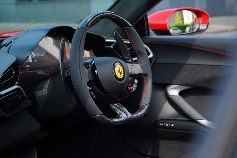 Stunning 296 GTS Finished In Rosso Corsa With Nero Leather. Fantastic Spec Inc: Apple CarPlay, Suspension Lift System, Passenger Display, Size XL Carbon Racing Seats, Racing Seat Lifter, Carbon Fibre Steering Wheel + LEDs, Front and Rear Parking Sensors, Surround View Cameras, Yellow Calipers, Adaptive Frontlight System, Rosso Cavallino Stitched On Headrests, Black Tailpipe Tips, Scuderia Shields, Electrochromic Rear View Mirror, Diamond Polished Forged Wheels, Premium HIFI System, Titanium Wheel Bolts, Wireless Smartphone Charger, Coloured Passenger Compartment Details In Rosso Ferrari, Coloured Special Stitching In Rosso, MyFerrari Connect Activated, Emergency Call, SVR Anti Theft System With Card. This 296 GTS Is As New With Remainder Of Manufacturers Warranty and Service Pack. VAT QUALIFYING.