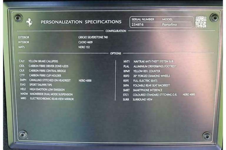 Call leo [Phone number removed].. 1 Owner as new . Cherished reg not on car but available to buy 456 HWJ .Ferrari Portofino in grigio silverstone with tan leather and black carpets,sport exhaust ,scud shields .mag ride .20 forged alloys. Carbon zone pack, balance of 4 year warranty from May 2020. 7 year service pack. apple car play.surround cameras.fully electric seats,foldable rear seats. car cover charger and wind deflector. PPF protection