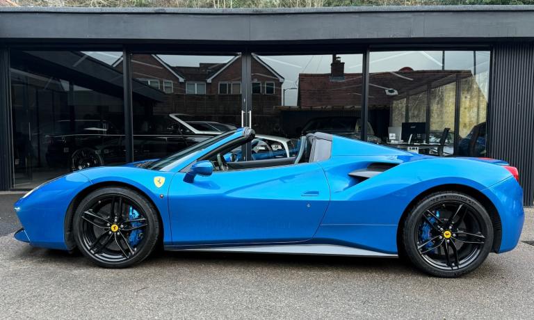 Ferrari 488 F1 Spider | Iconic Rosso Blue Ferrari Paint | Carbon Bucket Seats | Carbon Fibre Exterior | Full Ferrari Service History | Recently Serviced | 1 Year Ferrari Warranty Until October 2026 | Apple Carplay | Adaptive Frontlight System | Alluminio Brake Callipers | Carbon Fibre Rear Air-Ducts | Carbon Fibre Side Air Splitter | Outer Carbon Fibre B-Post Trim | Exterior Sill Kick In Carbon | Carbon Fibre Racing Package | Alcantara Centre Console | Leather/Alcantara Interior | Suspension Lifter | Cavallino Stitched On Headrest | Sport Exhaust System | Coloured Mats With Logo | Heat Insulating Windscreen | High Emotion Low Emission | Scuderia Ferrari Shields | Int/Ext Electrochromic Mirrors | Parking Camera | Front And Rear Parking Sensors | Special Colours | Aluminium Rev Counter | Goldrake Racing Seats | Racing Seat Lifter | 204 Forged Diamond Rims | Premium Hi-Fi System | Special Equipment | Coloured Special Stitching O.R. | Upper Part In Coloured Leather | Blu Corsa | Large Size Seats | Extra-Range | Passenger Compartment Mats In Black Alcantara | Flma Additional Mats In Black Alcantara With Side Inserts In Black Leather | Edge Trim In Baby Blu Leather With 488 | Spider Logo And Stitching In Blu 1318 Thread | Stcz Stitching In Blu 1318 Thread | Emph Cavallino Embroidered In Blu 1318 Thread | Special Equipment | Racing Seats With Central Contrasting Stripe And Side Inserts On Seat Sides In Baby Blu Leather Inserts In Baby Blu Leather On Knee Pads On Centre Console | Inserts In Baby Blu Leather On Upper Part Of Centre Of Door Panels | Carbon Fibre Steering Wheel | Ferrari Embossed Leather Interior With Special Rosso Blue Contrast Stitching | Carbon Ceramic Brakes | Dual Sport Exhaust | Scuderia Ferrari Shields On Fenders | Electric Nose Lift | Adaptive Head Lights | Ferrari Ceramic Brake Callipers | Bi-Xenon Headlights | Upgraded 20 Ferrari Dual Performance Alloys | Carbon Fibre Rear Air Ducts | Carbon Fibre Rear Fog Light | Engine Covers in Carbon Fibre | Carbon Fibre | Carbon Fibre Central Bridge | Carbon Fibre Dashboard Inserts | Embroidered Prancing Horse on Headrests | In Car Entertainment System | Coloured Mats with Logo | Satellite Navigation System | Electrochromic Mirrors | Parking Camera | Front and Rear Parking Sensors | Cruise Control | Electric Seats | Rev Counter | Special Contrast Stitching in Rosso | Floor Mats with Embroidered Model Logo | Anti-Lock Braking System | ASR System | Airbags | CST Control for Stability & Traction | Cruise Control | Daytime Running Lights | Dual Zone Air Conditioning System | Electronical Differential | Electric Heated Side Mirrors | Electric Windows | Engine Start Button On Steering Wheel | F1 Traction Control System | Keyless Start | Magnaride Shock Absorber System & More! | Desirable Colour Combination | Recently Serviced | HPI Clear | UK Registered | Genuine Low Mileage Example | Full Ferrari Service History | Well Maintained & Non Abused Example | Huge Specification | Over £80k Extras! | Looks & Sounds Incredible | Ideal For Travelling Abroad | Left Hand Drive [LHD]