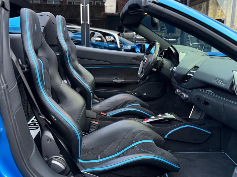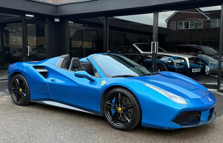 Ferrari 488 F1 Spider | Iconic Rosso Blue Ferrari Paint | Carbon Bucket Seats | Carbon Fibre Exterior | Full Ferrari Service History | Recently Serviced | 1 Year Ferrari Warranty Until October 2026 | Apple Carplay | Adaptive Frontlight System | Alluminio Brake Callipers | Carbon Fibre Rear Air-Ducts | Carbon Fibre Side Air Splitter | Outer Carbon Fibre B-Post Trim | Exterior Sill Kick In Carbon | Carbon Fibre Racing Package | Alcantara Centre Console | Leather/Alcantara Interior | Suspension Lifter | Cavallino Stitched On Headrest | Sport Exhaust System | Coloured Mats With Logo | Heat Insulating Windscreen | High Emotion Low Emission | Scuderia Ferrari Shields | Int/Ext Electrochromic Mirrors | Parking Camera | Front And Rear Parking Sensors | Special Colours | Aluminium Rev Counter | Goldrake Racing Seats | Racing Seat Lifter | 204 Forged Diamond Rims | Premium Hi-Fi System | Special Equipment | Coloured Special Stitching O.R. | Upper Part In Coloured Leather | Blu Corsa | Large Size Seats | Extra-Range | Passenger Compartment Mats In Black Alcantara | Flma Additional Mats In Black Alcantara With Side Inserts In Black Leather | Edge Trim In Baby Blu Leather With 488 | Spider Logo And Stitching In Blu 1318 Thread | Stcz Stitching In Blu 1318 Thread | Emph Cavallino Embroidered In Blu 1318 Thread | Special Equipment | Racing Seats With Central Contrasting Stripe And Side Inserts On Seat Sides In Baby Blu Leather Inserts In Baby Blu Leather On Knee Pads On Centre Console | Inserts In Baby Blu Leather On Upper Part Of Centre Of Door Panels | Carbon Fibre Steering Wheel | Ferrari Embossed Leather Interior With Special Rosso Blue Contrast Stitching | Carbon Ceramic Brakes | Dual Sport Exhaust | Scuderia Ferrari Shields On Fenders | Electric Nose Lift | Adaptive Head Lights | Ferrari Ceramic Brake Callipers | Bi-Xenon Headlights | Upgraded 20 Ferrari Dual Performance Alloys | Carbon Fibre Rear Air Ducts | Carbon Fibre Rear Fog Light | Engine Covers in Carbon Fibre | Carbon Fibre | Carbon Fibre Central Bridge | Carbon Fibre Dashboard Inserts | Embroidered Prancing Horse on Headrests | In Car Entertainment System | Coloured Mats with Logo | Satellite Navigation System | Electrochromic Mirrors | Parking Camera | Front and Rear Parking Sensors | Cruise Control | Electric Seats | Rev Counter | Special Contrast Stitching in Rosso | Floor Mats with Embroidered Model Logo | Anti-Lock Braking System | ASR System | Airbags | CST Control for Stability & Traction | Cruise Control | Daytime Running Lights | Dual Zone Air Conditioning System | Electronical Differential | Electric Heated Side Mirrors | Electric Windows | Engine Start Button On Steering Wheel | F1 Traction Control System | Keyless Start | Magnaride Shock Absorber System & More! | Desirable Colour Combination | Recently Serviced | HPI Clear | UK Registered | Genuine Low Mileage Example | Full Ferrari Service History | Well Maintained & Non Abused Example | Huge Specification | Over £80k Extras! | Looks & Sounds Incredible | Ideal For Travelling Abroad | Left Hand Drive [LHD]