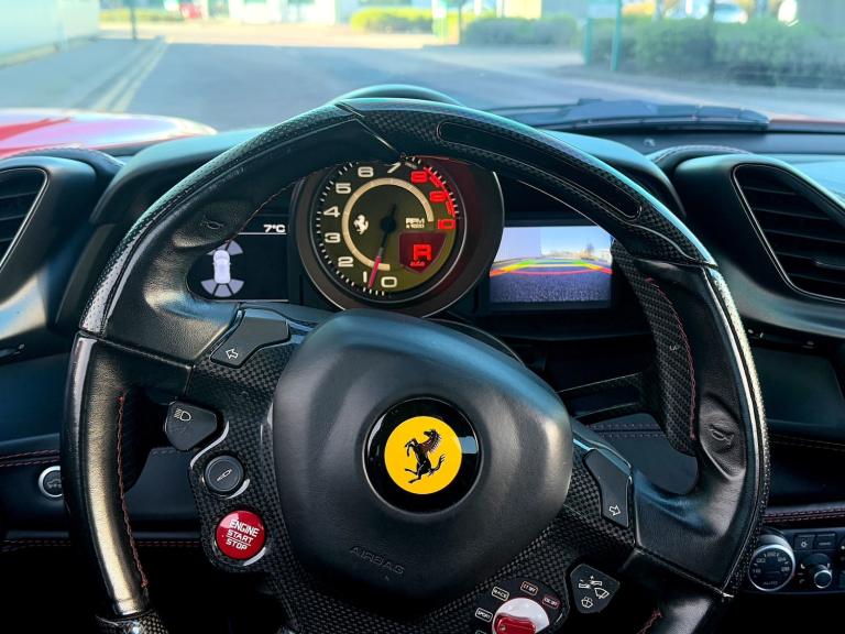 Ferrari 488 GTB In Iconic Rosso Corsa Paint | Carbon Fibre Exterior | Carbon Fibre Steering Wheel | Ferrari Embossed Leather Interior With Special Rosso Red Contrast Stitching | Carbon Ceramic Brakes | Dual Sport Exhaust | Scuderia Ferrari Shields On Fenders | Electric Nose Lift | Adaptive Head Lights | Rosso Red Brake Callipers | Bi-Xenon Headlights | Upgraded 20 Black Ferrari 488 GTB Performance Alloys | Carbon Fibre Rear Air Ducts | Carbon Fibre Rear Fog Light | Carbon Fibre Side Air Splitters | Engine Covers in Carbon Fibre | Carbon Fibre | Carbon Fibre Central Bridge | Carbon Fibre Dashboard Inserts | Embroidered Prancing Horse on Headrests | In Car Entertainment System | Coloured Mats with Logo | Satellite Navigation System | Electrochromic Mirrors | Parking Camera | Front and Rear Parking Sensors | Cruise Control | Electric Seats | Yellow Rev Counter | Special Contrast Stitching in Rosso | Floor Mats with Embroidered Model Logo | Anti-Lock Braking System | ASR System | Airbags | CST Control for Stability & Traction | Cruise Control | Daytime Running Lights | Dual Zone Air Conditioning System | Electronical Differential | Electric Heated Side Mirrors | Electric Windows | Engine Start Button On Steering Wheel | F1 Traction Control System | Keyless Start | Magnaride Shock Absorber System & More! | Desirable Colour Combination | Recently Serviced | HPI Clear | EU Supplied | UK Registered | Genuine Low Mileage Example | Full Service History | Well Maintained & Non Abused Example | Huge Specification | Over £50k Extras! | Looks & Sounds Incredible | Ideal For Travelling Abroad | Left Hand Drive [LHD]