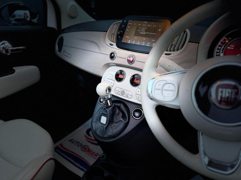 Rosso Performance Are Excited To Present This Stunning Fiat 500C 1.2 Dolcevita Euro 6 (s/s) 2dr FInished In White With Ivory Interior With Red Logos.Massive Specification Including: 16in Alloy Wheels - White Finish, 7in HD Touchscreen Radio with 3D Navigation - Bluetooth - USB and DAB, 7in TFT Instrument Cluster, Apple CarPlay - Android Auto Connectivity, Automatic Climate Control, Automatic Door Locking, Body Coloured Bumpers, Body Coloured Side Rubbing Strips with 500 Logo, Chrome Finished Door Mirror Covers, Chrome Kit, Chrome Plated Exterior Door Handles, Chrome Trim on Bonnet, Cruise Control, Dolcevita Badge on Tailgate, Electric Front Windows, Electrically Adjustable Painted Door Mirrors with Defrosting and External Temperature Sensor, Fog Lights, Front Seats with Memory Function, LED Daytime Running Lights, Rear Parking Sensors, Remote Central Locking, Speed Limiter, Steering Wheel - Height Adjustment, Techno leather Steering Wheel with Audio Controls, Unique All Around Liner - Red-White-Red, Unique Floor Mats with White Boarders, Unique Striped Roof, Unique Wooden Dashboard And Much More!!Part exchange welcome, ??Finance & Warranty Available . Viewing By Appointment Only. For more information please contact our friendly and helpful sales team on 0113 217 5916