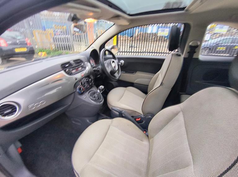 2010(10) Fiat 500 lounge. Metallic Grey with tan trim and Panoramic Roof. Alloys Tints Power steering Aircon CD player Electric windows Central locking 2 keys. Ever popular and economic with low road tax. Service history. Great value £2199.