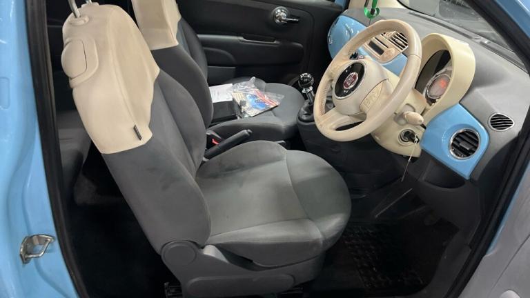 FRESH IN STOCK AWAITING PREP Fiat 500 1.2 Lounge Start/Stop Hatchback finished in the sought-after light blue, with 86,000 miles from new and a full service history. The Lounge specification is one of the highest trims and includes the desirable fixed panoramic glass roof, chrome exterior detailing, body-coloured bumpers, alloy wheels, air conditioning, City steering mode, steering-wheel mounted controls, electric windows, electric mirrors, USB connectivity, Bluetooth, ISOFIX child seat points and a bright, stylish interior. Cheap to run, low insurance group and excellent fuel economy make this an ideal first car or economical daily driver. Prepared to our usual high standard prior to sale and supplied with warranty, with extended warranty options available. Please call us for further information.
