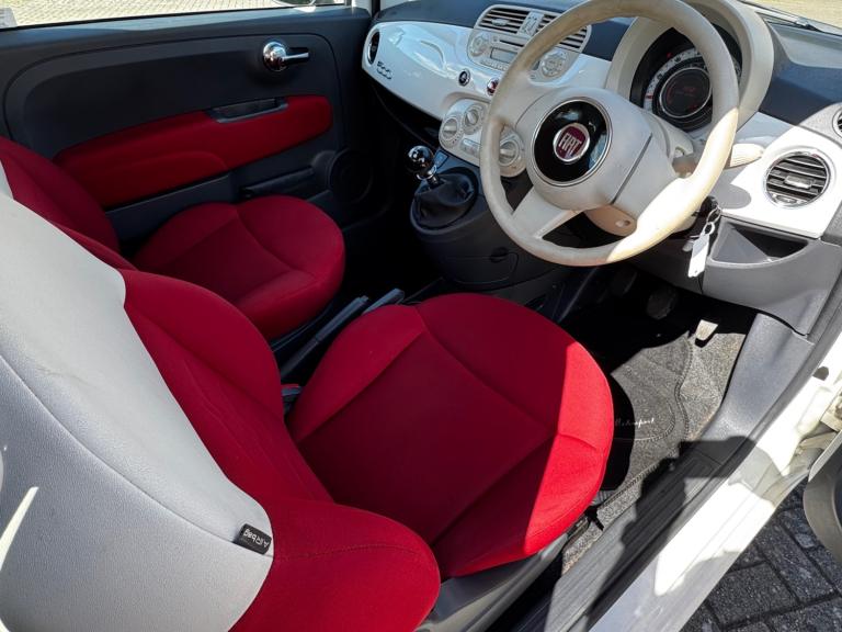 Ideal First Car- Fiat 500 1.2 Popular, Manual 5 Speed Gearbox, Finished in White with White and Red Interior, only Covered 24,500 miles from new, the last owner had it for 12 Years. Excellent condition throughout; drives like new. Comes with full service history, Cam-belt has been changed recently, MOT until 30/12/2026, Remote Central Locking, Electric Front Windows, Electric Door Mirrors, Start/Stop, Low Road Tax, Good Tyre's all Round. Very Economical. Viewing by Appointment only, 3 Months Premium Warranty Included. Available 7 Days a Week.
