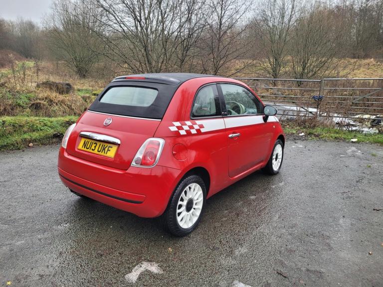 2013 FIAT 500 C COLOUR THERAPY CONVERTIBLE RED 70 BHP3 DOOR 1.3 PETROL MANUAL TRANSMISSION * HPI CLEAR **12MONTHS MOT ** 76K MILAGE WARRANTYED ** 2 OWNERS FROM NEW ** £35 ROAD TAX *FRONT FOG LIGHTS ALLOY WHEELS ELECTRIC MIRRORS ELECTRIC WINDOWS ELECTRIC CONVERTIBLE ROOF 2 TONE INTERIOR AIR CONDITIONING MULTI FUNCTIONAL STEERING WHEEL POWER STEERING CUP HOLDERS ABS PAS REAR FOLDING SEATS CENTRAL LOCKING IMMOBILISER 1 KEY LOGBOOK PRESENT PX WELCOME PRICED AT £3,400TEST DRIVE WELCOME STARTS 1ST TIME DRIVES EXCELLENT GOOD ENGINE GEARBOX CLUTCH PULLS NICELY THROUGH ALL GEARS CHEAP INSURANCE GROUP ECONOMICAL TO RUN IDEAL FOR NEW DRIVER
