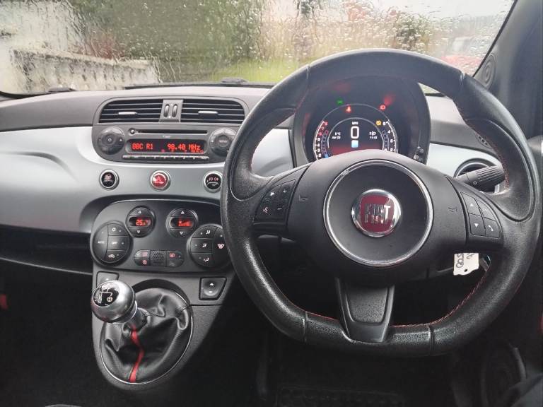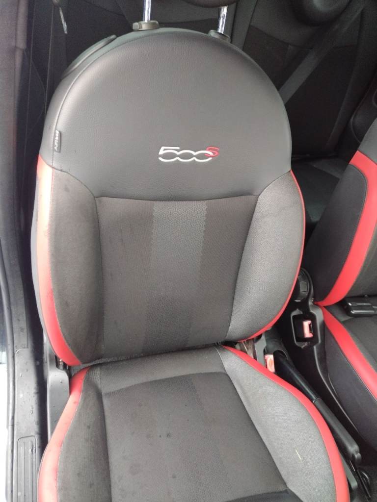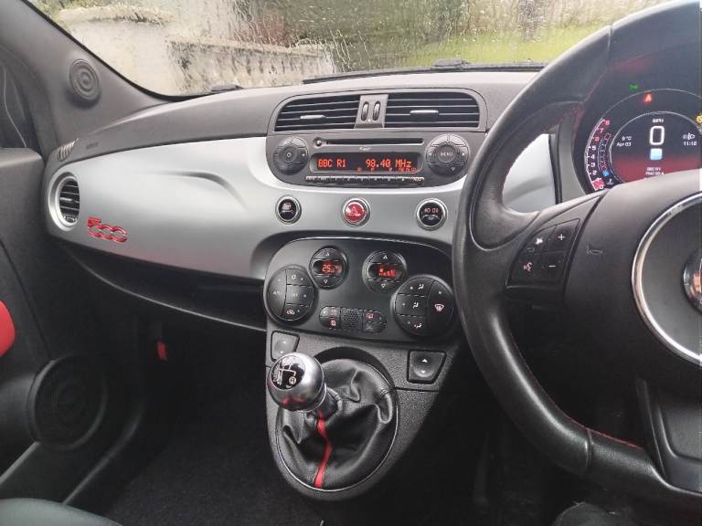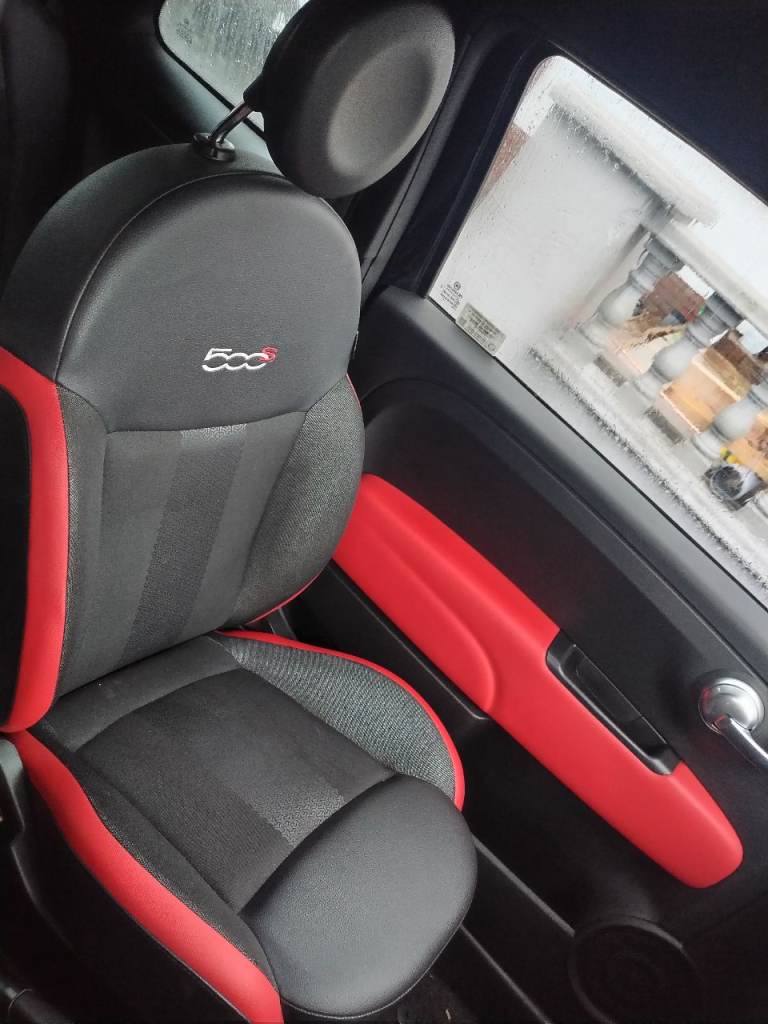 Fitted with specific 500S sport black and red seats with 500 embroidery, satin graphite dashboard trim, and a black roof lining.
