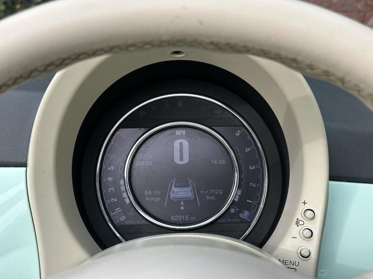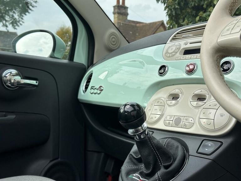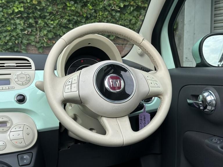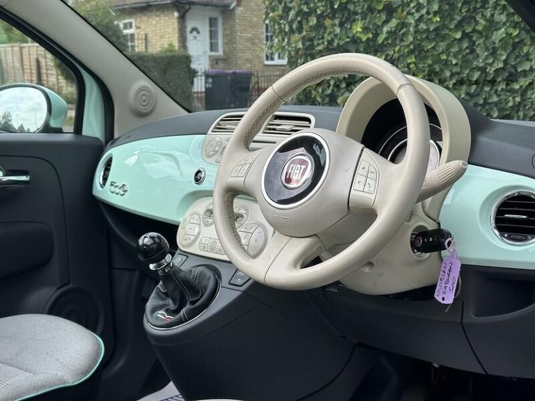 £128 DEPOSIT - £120 PCMGREAT FINANCE PACKAGES AVAILABLEPresenting a Fiat 500 0.9 TwinAir Lounge finished in Smooth Mint complemented with a cloth interior. Buy with confidence as we are an AA approved dealer. FREE 12 month AA breakdown cover with any vehicle. This vehicle is supplied with service history and 1 key. We are finance specialists with access to over 40 financial lenders. Personalised finance quotations are available upon request, or use our calculator below. All vehicles are HPI clear unless otherwise declared and are fully health checked prior to sale. Nationwide delivery available. This vehicle is supplied with a 3 month warranty. You can extend the 3 month warranty to a 6, 12 or 24 month policy if required.Additional Services Service+ PlanTake the hassle out of maintenance with our in-house service plan. Speak with our sales team for full details and options tailored to your needs AutoGlym LifeShineKeep your vehicle looking showroom-fresh. This premium ceramic coating and interior protection system repels dirt, dust, and grime—making cleaning easier and preserving your car’s condition inside and out.?Want a closer look,We’re happy to provide a personalised video of this vehicle. Just give us a call or send us an enquiry!To avoid disappointment we recommend calling prior to visiting to ensure the vehicle is still available..Smooth Mint,TFT Screen - Colour 7in,Cloth - Ivory with Green Logo - Ivory Ambience and Ivory Roof, 12V Socket - Front, Blue&Me - Hands Free System with USB Port, Radio-CD and MP3 Player, USB Port, Exterior Temperature Sensor, GSI - Gear Shift Indicator, Rear Parking Sensors, Tyre Pressure Monitor System, Voice Recognition, 16in Alloy Wheels - 74A, Body Coloured Bumpers, Body Coloured Side Rubbing Strips with 500 Logo, Bumpers - Chrome Inserts, Chrome Exhaust Tailpipe, Chrome Kit, Chrome Window Contours, Door Handles - Chrome, Electric Front Windows, Electrically Adjustable Heated Door Mirrors, Fix and Go Puncture Repair Kit, Kickplates - Chrome, Locking Wheel Nuts, Space Saver Spare Wheel, Thermal Windows, Daytime Running Lights, Fog Lights, Climate Control - Automatic Monozone, Door Handles Interior - Chrome, Grab Handle, Height Adjustable Drivers Seat, Seats - Passengers Memory Function, Seats-back Pockets, Split Folding 50:50 Rear Seat, Steering Wheel - Height Adjustment, Steering Wheel - Leather with Audio Controls, Steering Wheel Audio Controls, Storage Under Passenger Seat, Dualdrive Power Steering, ABS - Anti-Lock Braking System, Airbags - Driver, Airbags - Front Side, Airbags - Passenger, ASR - Anti-Slip Regulation, BAS - Brake Assistance System, Drivers Knee Airbag, EBD - Electronic Brakeforce Distribution, ESP - Electronic Stability Programme, Hill Holder, MSR - Motor Slip Regulation, Remote Central Locking, Steering Wheel - Black, Window Airbags
