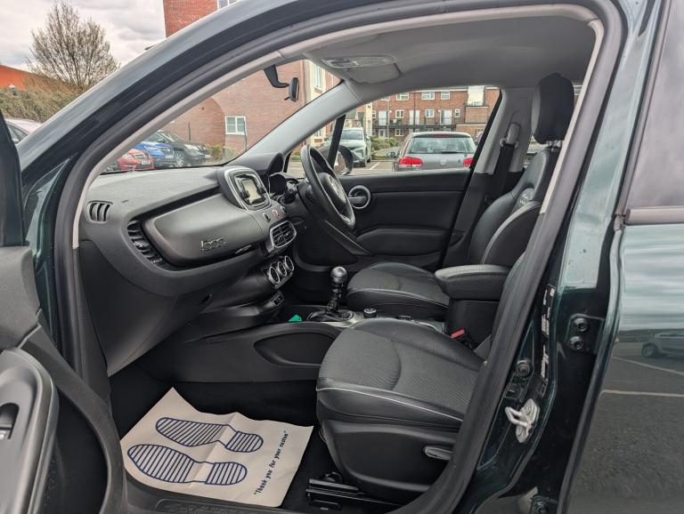 2015 Fiat 500X - Toscana Green - ULEZ Compliant - 7 Service Stamps - 2 Keys - 6 Months AA Warranty Included This 2015 Fiat 500X finished in Toscana Green is a stylish compact SUV that combines practicality with distinctive Italian design. With ULEZ compliance, 7 service stamps, last serviced in February 2025, and supplied with two keys, this well maintained 500X is ideal for families, commuters, or anyone looking for a higher driving position with modern features. ** Performance and Economy ** The Fiat 500X offers a smooth and comfortable driving experience with light steering and good visibility. The Drive Mood Selector allows you to tailor the driving characteristics to suit different conditions, while the efficient engine keeps running costs sensible. It is well suited to both city driving and longer motorway journeys. ** Features and Technology ** Satellite navigation, 5in touchscreen with Uconnect RadioNav LIVE, Bluetooth with audio streaming, cruise control, rear parking sensors, automatic dual zone climate control, Bi Xenon headlights, keyless entry and go, drive mood selector, USB and AUX connectivity ** Comfort and Practicality ** The interior offers a comfortable and versatile layout with ecoleather fabric seats, height adjustable driver seat, front armrest, and dual zone climate control. The 60 40 split folding rear seats and height adjustable load platform provide flexible boot space, while roof rails add additional practicality. Ambient lighting, steering wheel audio controls, and multiple storage compartments make it ideal for everyday use. ** Safety and Security ** This 500X comes equipped with ABS, ESP, traction control, electronic rollover mitigation, hill holder, multiple airbags, tyre pressure monitoring system, electronic parking brake, deadlocks, keyless entry and go, and ISOFIX child seat mounting points, helping to provide reassurance for driver and passengers. ** Ownership and Condition ** This vehicle is ULEZ compliant and has been well maintained with 7 service stamps. The last service was completed in February 2025. The car is supplied with two keys and presents well in Toscana Green, making it a stylish and practical choice. ** Included with Purchase ** * A 6 month AA warranty included, which can be extended * 12 month free AA breakdown cover * £75 gift card toward your next MOT and service * Drive away insurance available (T&Cs apply) * Finance options available ** Next Steps