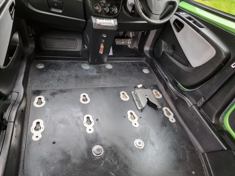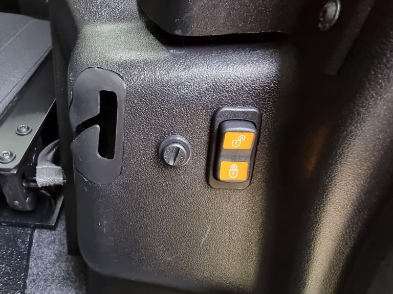 The driver's and passenger seats can be removed and refitted with ease by simply unscrewing two thumb screws, the vehicle also benefits from fold away rear seats.