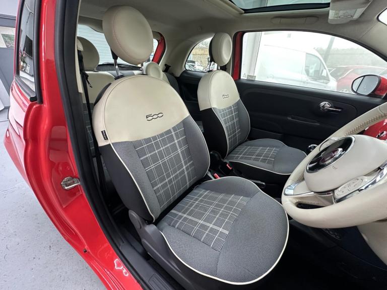Welcome to SLCARS based in Warminster Wiltshire!Here at SL CARS we are happy to introduce this 2016 Fiat 500 Lounge!This 2016 Fiat 500 Lounge is a superb example, boasting a clear vehicle history check and having had only two owners. Powered by an efficient 1.2 litre Euro 6 petrol engine, this Lounge trim model offers a delightful driving experience. Inside, you'll find comfort and convenience with front seats featuring a memory function and a fixed glass roof complete with a sunblind, allowing you to enjoy the open sky. For your entertainment and connectivity, a 5 inch touchscreen radio provides AUX, USB, DAB, and Bluetooth capabilities, while air conditioning ensures a pleasant cabin temperature.This Fiat 500 Lounge stands out with its impressive fuel economy, achieving a remarkable 60 miles per gallon, which indicates it is more economical than many similar vehicles. Furthermore, its low insurance group and low CO2 emissions highlight its cost effectiveness as well as being only £20 for 12 months road tax per year!, making it an attractive choice for many drivers. Rear parking sensors with parking assistance are also included, adding an extra layer of ease to your journeys.