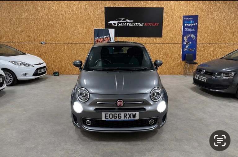 Finance now from only 79 PMOpen 7 days a week. Nationwide Delivery.FOR FULL STOCK VISIT. SANDMPRESTIGEMOTORS.UKFinance this vehicle now and get it delivered to your driveway, use the finance calculator below.No admin or hidden charges. Price includes warranty. Buy with complete peace of mind.We have a wide range of Automatic and Manual vehicles in the stock. For full stock please click on our name below or visit our website to view all the vehicles.Part exchange welcome or sell your vehicle instantly.All our vehicles are HPI clear and comes with full HPI check report.Viewings by appointment only to ensure the availability of the vehicle.We are pleased to present Fiat 500 stunning condition low miles high spec finished in metallic grey very clean car inside and out drives perfectly well maintained mileage 61932 low for its age touchscreen infotainment system DAB radio FM AM bluetooth connectivity phone and media Uconnect system steering wheel controls digital display cluster trip computer voice control USB AUX input half leather seats with 500 design multi function steering wheel electric windows electric mirrors air conditioning city steering mode central locking cup holders very clean interior exterior features front fog lights daytime running lights rear parking sensors alloy wheels in excellent condition body styling kit sporty look privacy glass.A real head turner won't be here long!