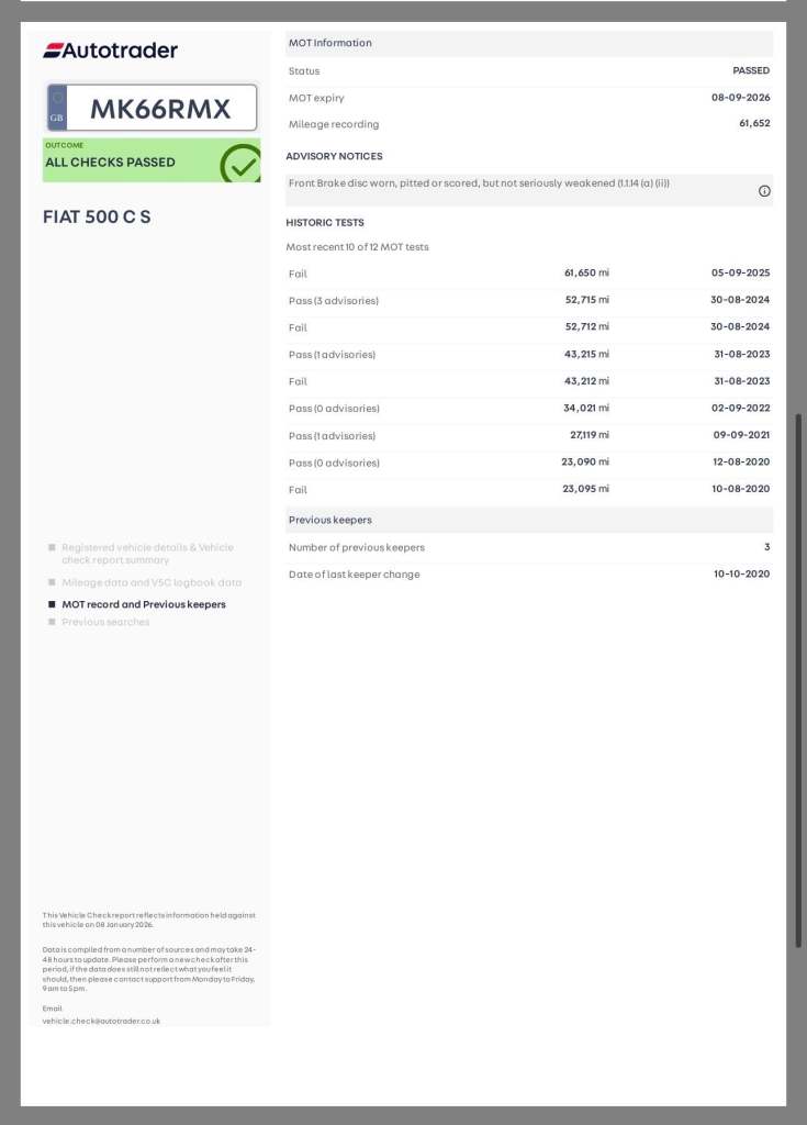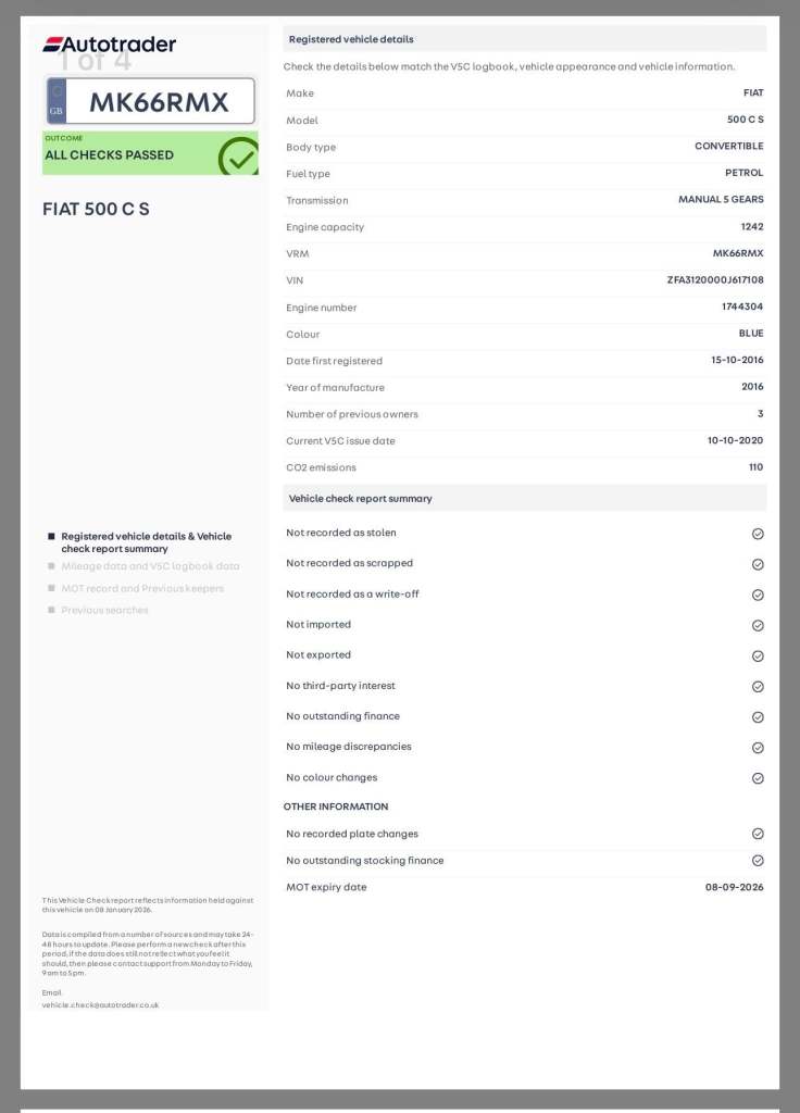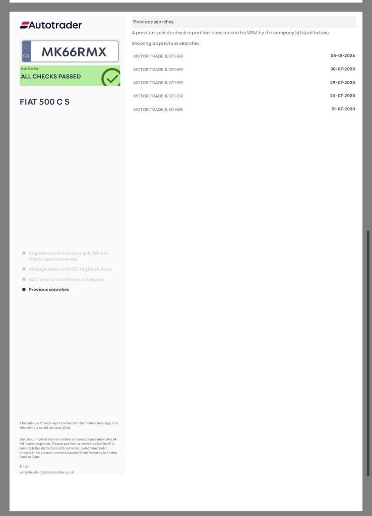 Our vehicle history check is provided for guidance only. Please check all the details with the seller before purchasing