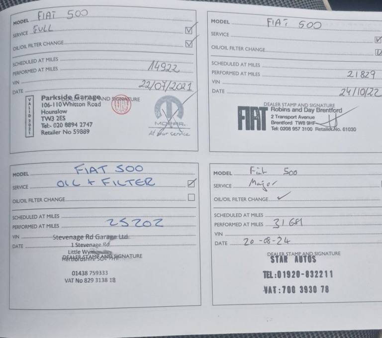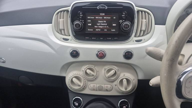 Discover this charming 2017 Fiat 500 Lounge, boasting exceptionally low mileage for its age at just 40,782 miles and having had only two owners. This Euro 6 compliant 1.2 litre petrol model comes with a clear vehicle history check, offering peace of mind. Inside, youll find a comfortable cabin featuring air conditioning, front seats with a memory function, and a 5 inch touchscreen radio complete with AUX, USB, DAB, and Bluetooth connectivity. Enjoy the light and airy feel provided by the fixed glass roof with its integrated sunblind, and benefit from the convenience of rear parking sensors. This Fiat 500 Lounge stands out with its low insurance group, making it an economical choice for many drivers. Furthermore, its low CO2 emissions highlight its efficiency, indicating it is a more environmentally friendly option compared to many similar vehicles. These factors, combined with its well maintained provenance and desirable features, make this particular Fiat 500 a compelling proposition..12V Point, 15in Alloy Wheels, 50-50 Split Folding Rear Seat with Height Adjustable Head Restraints, 5in Touchscreen Radio with AUX - USB - DAB - Bluetooth, ABS with EBD, Air Conditioning, Automatic Door Locking, Body Coloured Bumpers, Chrome Kit, Chrome Plated Exterior Door Handles, Cruise Control, Driver and Passenger Airbag with Dual Stage System, Drivers Knee Airbag, Dualdrive Power Steering, ESC - Electronic Stability Control, Electric Front Windows, Electrically Adjustable Painted Door Mirrors with Defrosting and External Temperature Sensor, Fix and Go Puncture Repair Kit, Fixed Glass Roof with Sunblind, Fog Lights, Front Seat Belts with Pretensioners - Load Limiter And Fastening Sensor, Front Seats with Memory Function, Hazard Light Automatic Activation During Emergency Braking, Heat Reflective Windows, Heated Rear Window, Height Adjustable Drivers Seat, Height Adjustable Front Head Restraints, ISOFIX Attachment Points for Child Safety Seat On Rear Seat, Instrument Panel with Rev Counter, LED Daytime Running Lights, Rear Parking Sensors, Rear Window Wiper-Washer, Remote Central Locking, Seats-back Pockets, Side Airbags, Speed Limiter, Steering Wheel - Height Adjustment, Steering Wheel - Leather with Audio Controls, TPMS - Tyre Pressure Monitoring System, Window Airbags, Bossa Nova White, Cloth - Black-Light Grey-Ivory with Ivory Ambience