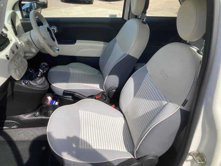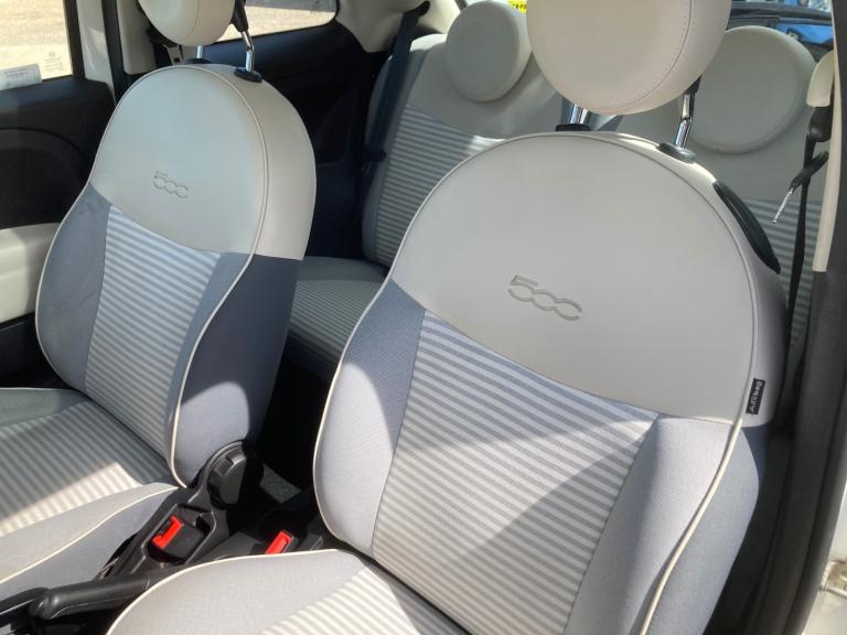 LOVELY 2018 18 FIAT 500 1.2 COLLEZIONE FALL 3DR BI-COLOUR IN PEARL GREY OVER WHITE WITH PINSTRIPE, LOVELY SPECIAL CREAM INTERIOR, GLASSROOF, AIRCON, REAR PARKING SENSORS, DIAMOND CUT ALLOY WHEELS, BLUETOOTH AND DAB RADIO, CRUISE CONTROL, CHROME TRIM, 51,000 WITH FULL SERVICE HISTORY SALE NOW ONLY £6895 FEBRUARY SPECIAL