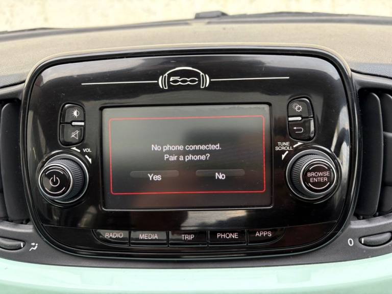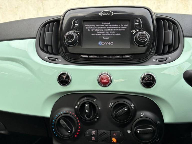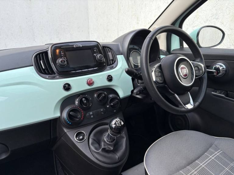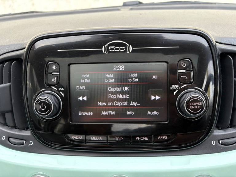 THIS WELL PRESENTED FIAT 500 FINISHED IN GREEN METALLIC. COMES WITH FULL SERVICE HISTORY, 2 KEYS AND FEATURES INCLUDING, AIR CONDITIONING, BLUETOOTH HANDS-FREE, PANORAMIC GLASS ROOF, TOUCHSCREEN DAB DIGITAL RADIO WITH AUX AND USB POINT, REAR PARKING SENSORS, MULTI FUNCTION LEATHER STEERING WHEEL, CRUISE CONTROL, AUTO START/STOP, CITRY DRIVING MODE, ELECTRIC WINDOWS, ELECTRIC MIRRORS, REMOTE CENTRAL LOCKING AND 15" ALLOY WHEELS. *** EXACT MILEAGE - 32,362 *** WE OFFER FINANCE, PART EXCHANGE AND EXTENDED WARRANTY ON ANY CAR. ALL OUR AA APPROVED VEHICLES COME WITH 12 MONTHS FREE BREAKDOWN COVER. VIDEO TOURS, ON LINE ORDERING AND DELIVERY OPTIONS CURRENTLY AVAILABLE. WE ARE OPEN 7 DAYS A WEEK. OUR HOURS ARE 9.00AM - 5.00 PM MONDAY TO FRIDAY, 9AM - 4.30PM SATURDAY AND SUNDAY BY APPOINTMENT. OUT OF HOURS WE ARE AVAILABLE ON TELEPHONE OR EMAIL. PLEASE CALL HARRY, GRAHAM OR TINA FOR FURTHER DETAILS OR TO ARRANGE A TEST DRIVE..12V Point, 15in Alloy Wheels, 50-50 Split Folding Rear Seat with Height Adjustable Head Restraints, 5in Touchscreen Radio with AUX - USB - DAB - Bluetooth, ABS with EBD, Air Conditioning, Automatic Door Locking, Body Coloured Bumpers, Chrome Kit, Chrome Plated Exterior Door Handles, Cruise Control, Driver and Passenger Airbag with Dual Stage System, Drivers Knee Airbag, Dualdrive Power Steering, ESC - Electronic Stability Control, Electric Front Windows, Electrically Adjustable Painted Door Mirrors with Defrosting and External Temperature Sensor, Fix and Go Puncture Repair Kit, Fixed Glass Roof with Sunblind, Fog Lights, Front Seat Belts with Pretensioners - Load Limiter And Fastening Sensor, Front Seats with Memory Function, Hazard Light Automatic Activation During Emergency Braking, Heat Reflective Windows, Heated Rear Window, Height Adjustable Drivers Seat, Height Adjustable Front Head Restraints, ISOFIX Attachment Points for Child Safety Seat On Rear Seat, Instrument Panel with Rev Counter, LED Daytime Running Lights, Rear Parking Sensors, Rear Window Wiper-Washer, Remote Central Locking, Seats-back Pockets, Side Airbags, Speed Limiter, Steering Wheel - Height Adjustment, Steering Wheel - Leather with Audio Controls, TPMS - Tyre Pressure Monitoring System, Window Airbags, Cloth - Black-Light Grey-Ivory with Black Ambience, Smooth Mint